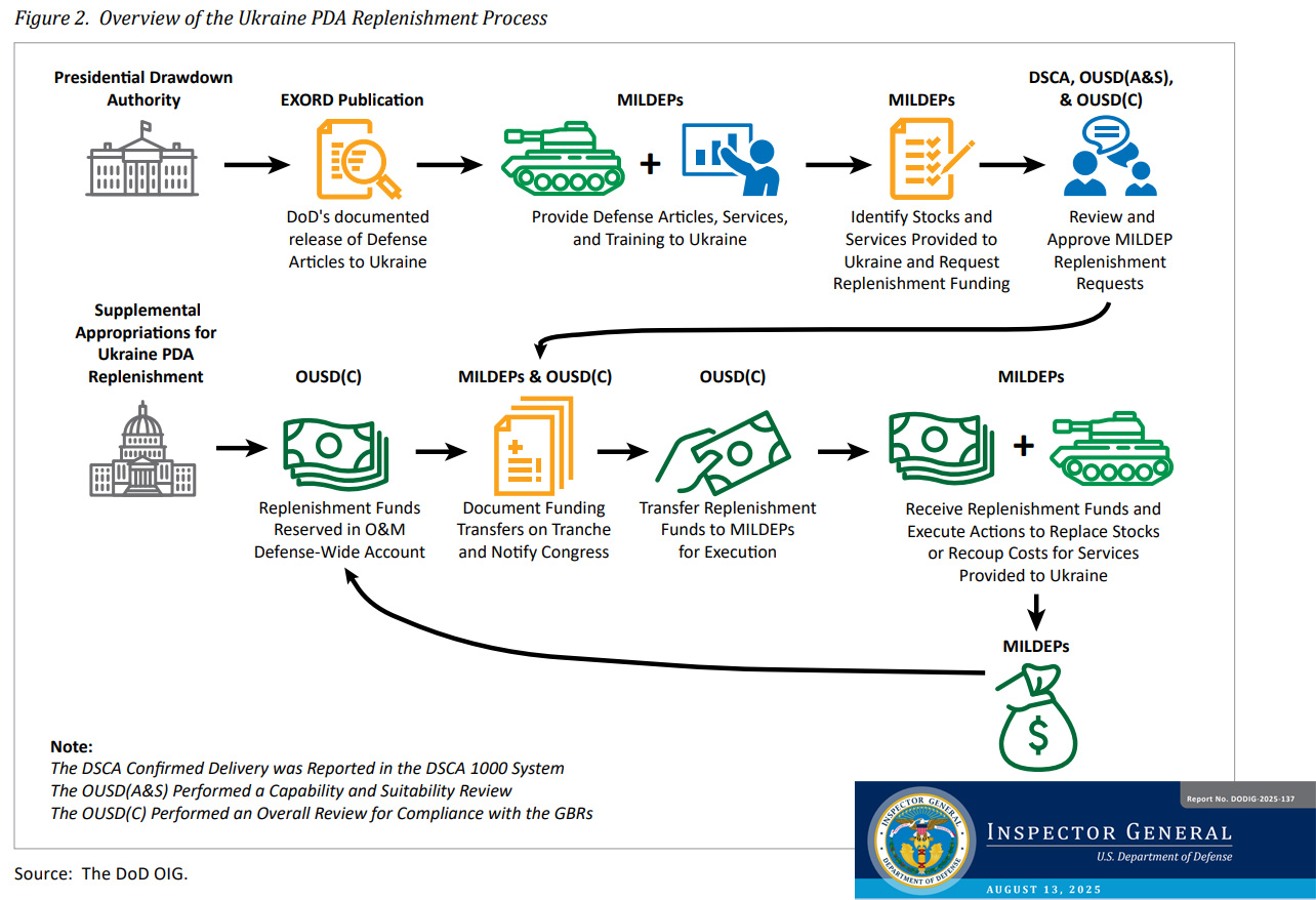 Συνολικά, ο έλεγχος αφήνει να εννοηθεί ότι μια πιο λεπτομερής αξιολόγηση της βοήθειας μέσω PDA — συνολικού ύψους 39,3 δισεκατομμυρίων — θα μπορούσε να αποκαλύψει ακόμη περισσότερα ενδιαφέροντα στοιχεία. Στην έκθεση αναφέρεται επίσης ότι στις 17 Δεκεμβρίου 2024 το Πεντάγωνο διέθεσε το τελευταίο πακέτο ύψους 5,1 δισεκατομμυρίων για την Ουκρανία στο πλαίσιο του PDA, το οποίο δεν έχει ακόμη δαπανηθεί.