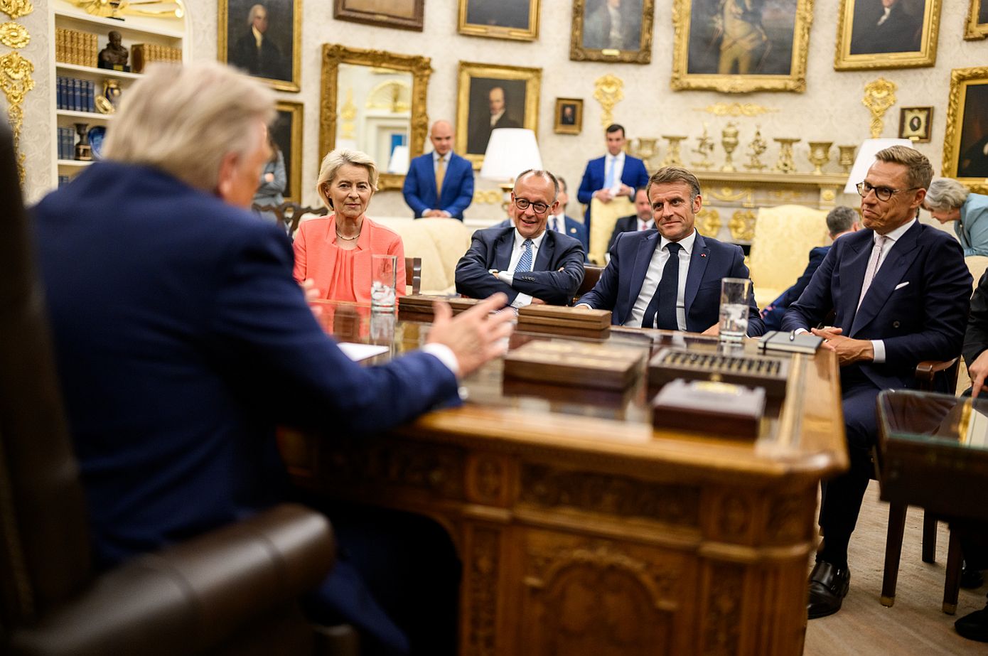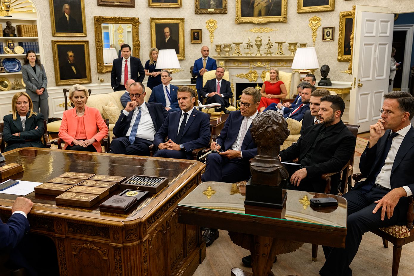Σε μια εγκάρδια προσπάθεια να τερματιστεί ο πόλεμος της Ρωσίας στην Ουκρανία, ο πρόεδρος των ΗΠΑ, Ντόναλντ Τραμπ, συναντήθηκε με τον πρόεδρο της Ουκρανίας, Βολοντίμιρ Ζελένσκι, και Ευρωπαίους ηγέτες στον Λευκό Οίκο τη Δευτέρα.