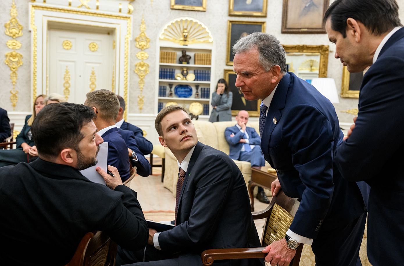 Ενδιαφέρον έχουν οι φωτογραφίες που δημοσιεύθηκαν το πρωί της Δευτέρας από τις συνομιλίες στο Οβάλ Γραφείο. Ο Τραμπ φαίνεται να κάθεται στο γραφείο του και απέναντί του όλοι οι προσκεκλημένοι του στον Λευκό Οίκο. Αρκετοί μάλιστα έγραψαν στα social media πως η εικόνα μοιάζει με δάσκαλο που έχει απέναντί του, τους «μαθητές» του.