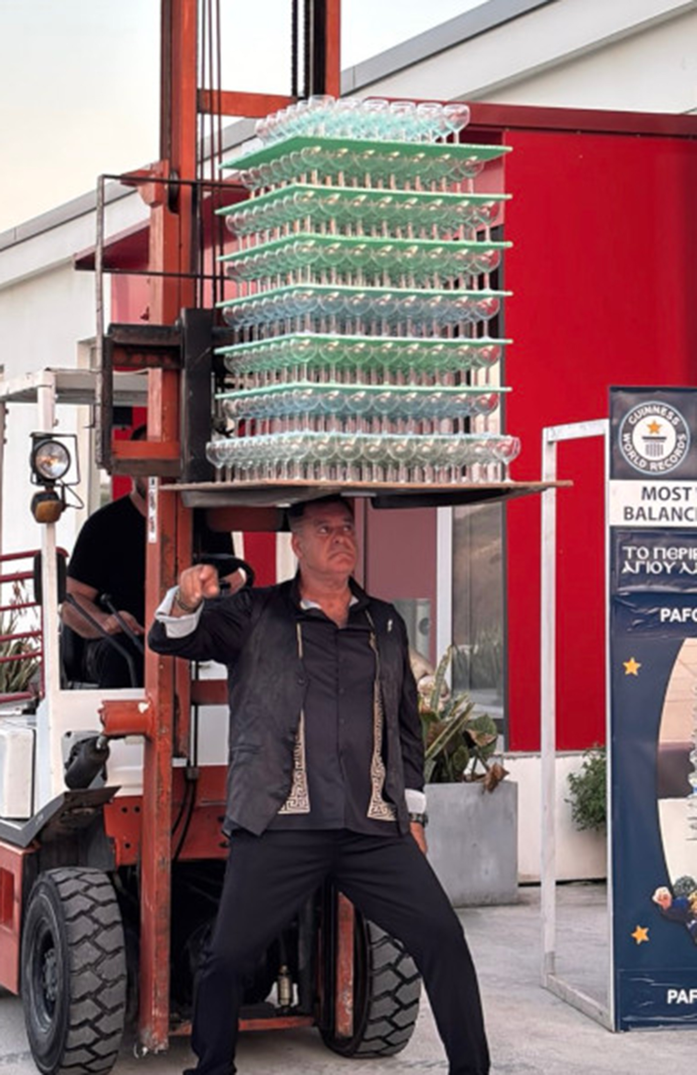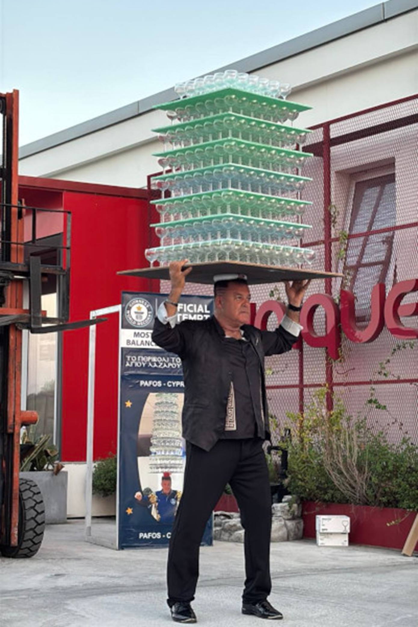 Το 2023 είχε σπάσει το ίδιο ρεκόρ, ισορροπώντας 319 ποτήρια. Αλλά, όταν ο τίτλος του καταρρίφθηκε, αποφάσισε να δώσει μια δεύτερη ευκαιρία στο όνειρό του, ανεβάζοντας τον πήχη. Το εγχείρημά του ήταν πραγματικά εντυπωσιακό: τα 511 ποτήρια ζύγιζαν συνολικά πάνω από 63 κιλά.