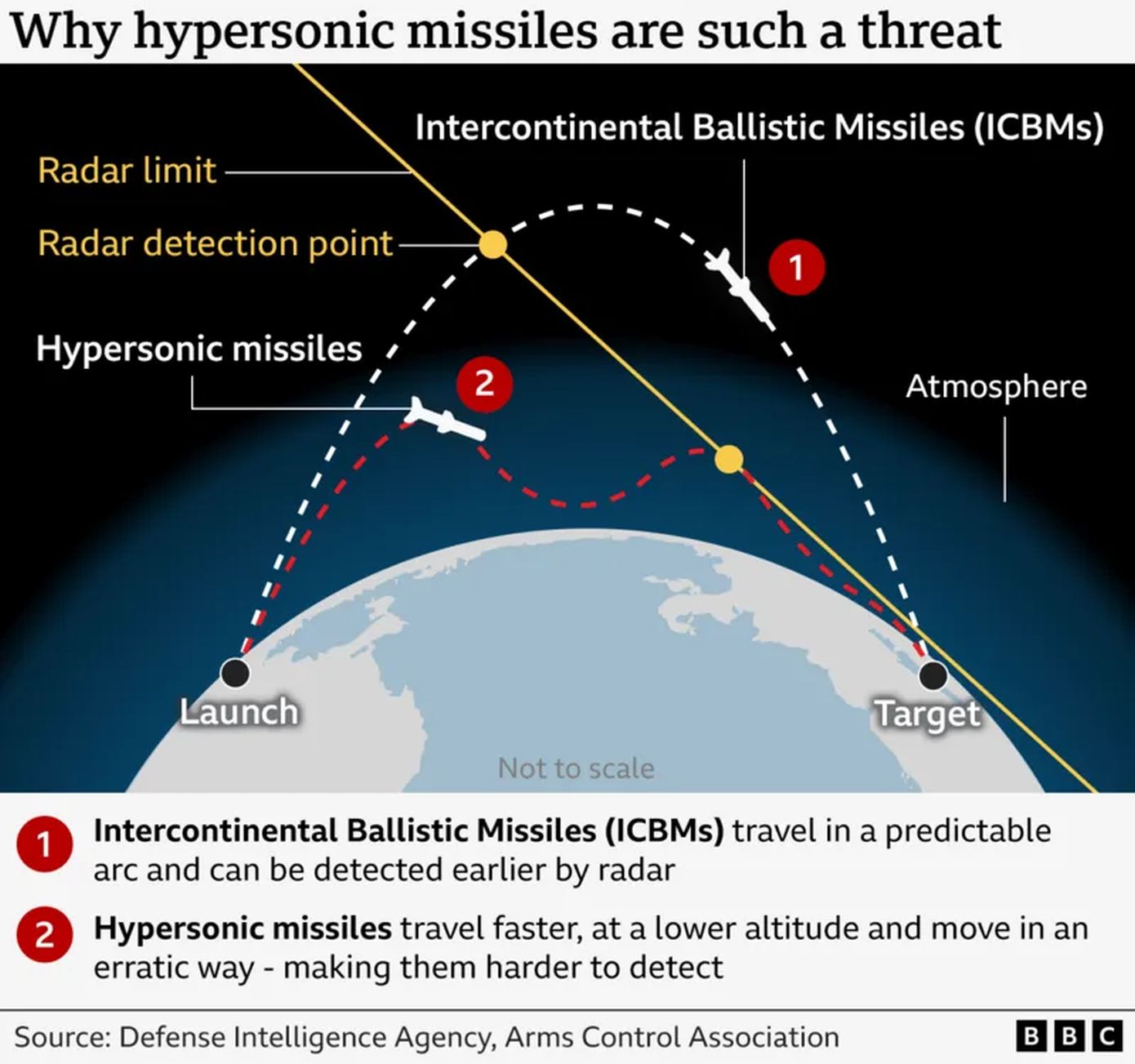 Ωστόσο, όσον αφορά την καθαρά καταστροφική δύναμη, οι υπερηχητικοί (hypersonic) πύραυλοι δεν διαφέρουν πολύ από τους supersonic ή subsonic πύραυλους κρουζ, σύμφωνα με τον κ. Φριρ. «Αυτό που τους ξεχωρίζει είναι η δυσκολία ανίχνευσης, παρακολούθησης και αναχαίτισης».