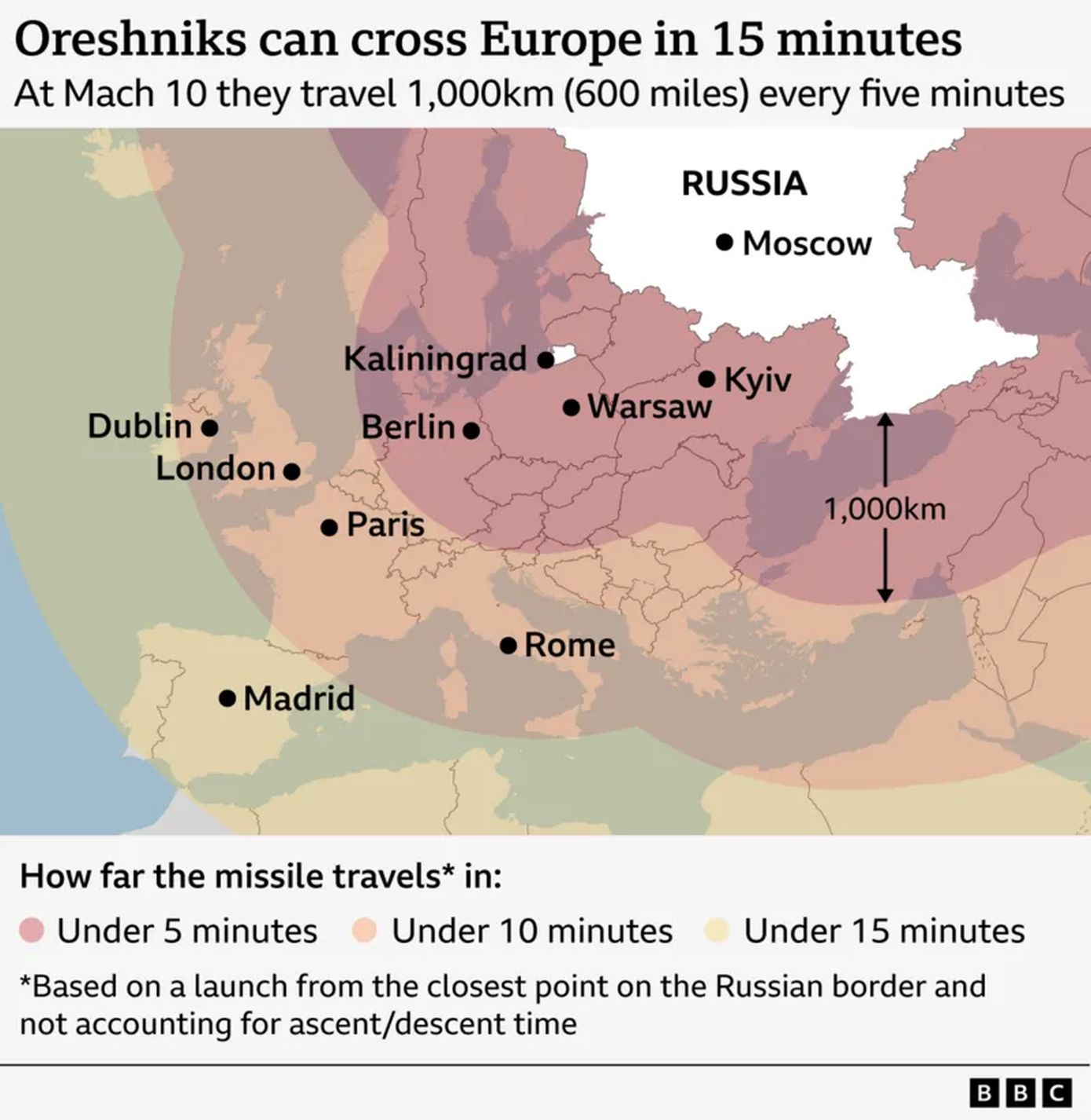 Για την Ευρώπη, η λανθάνουσα απειλή προς τις χώρες του ΝΑΤΟ προέρχεται κυρίως από τους ρωσικούς πυραύλους, μερικοί από τους οποίους είναι σταθμευμένοι στην ακτή της Βαλτικής, στο Καλίνινγκραντ. Τι θα συνέβαινε αν ο Πούτιν διέταζε επίθεση στο Κίεβο με έναν Oreshnik, αυτή τη φορά οπλισμένο με πλήρες φορτίο εκρηκτικών υψηλής ισχύος;