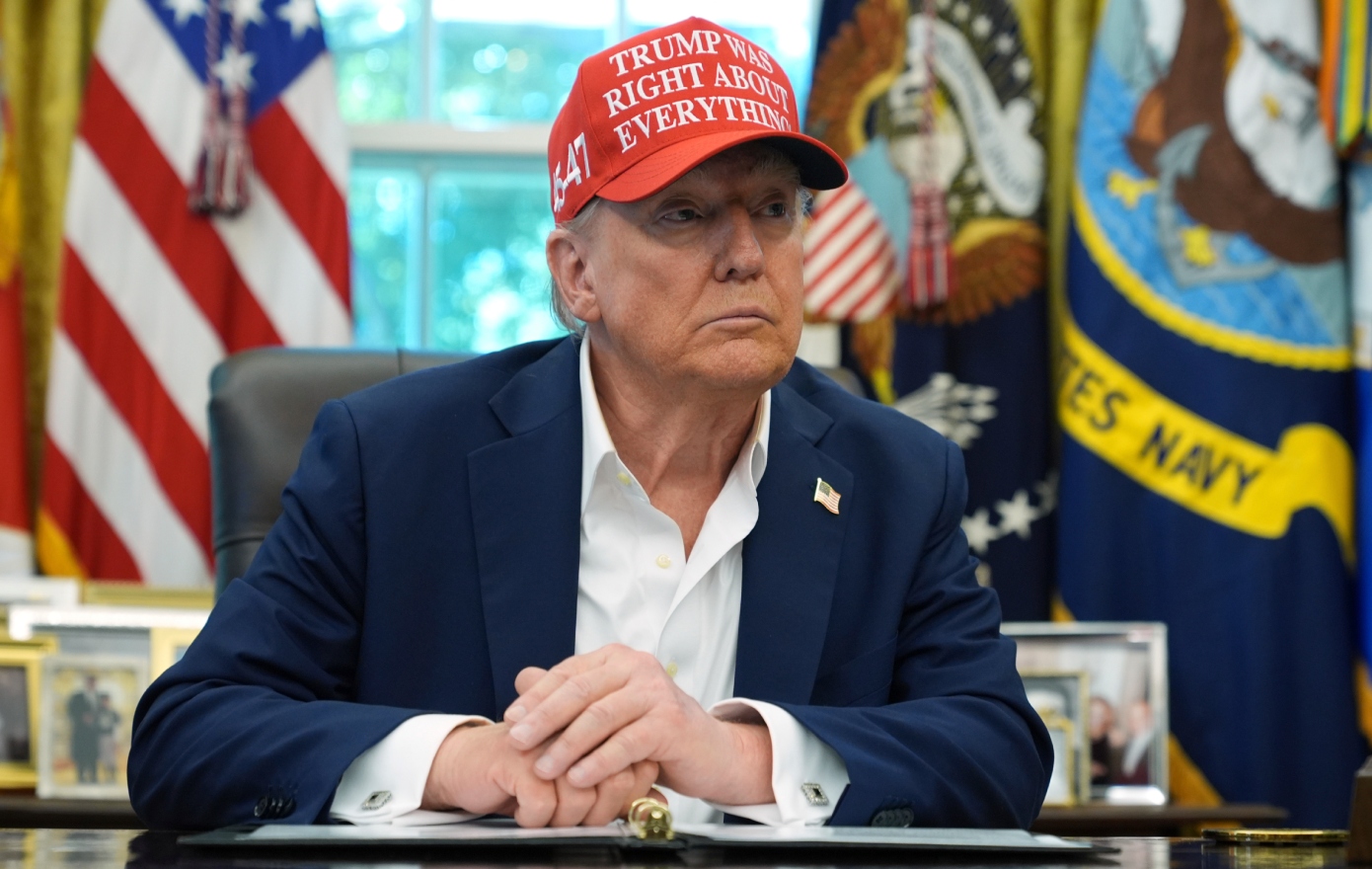 Η μελανιά που κάλυπτε το μεγαλύτερο μέρος της πίσω πλευράς της δεξιάς παλάμης του Τραμπ ήταν ορατή κατά την υπογραφή εκτελεστικού διατάγματος στο Οβάλ Γραφείο το πρωί της Δευτέρας και αργότερα μέσα στην ημέρα κατά τη συνάντηση με τον πρόεδρο της Νότιας Κορέας, Λι Τζέι Μιουνγκ.