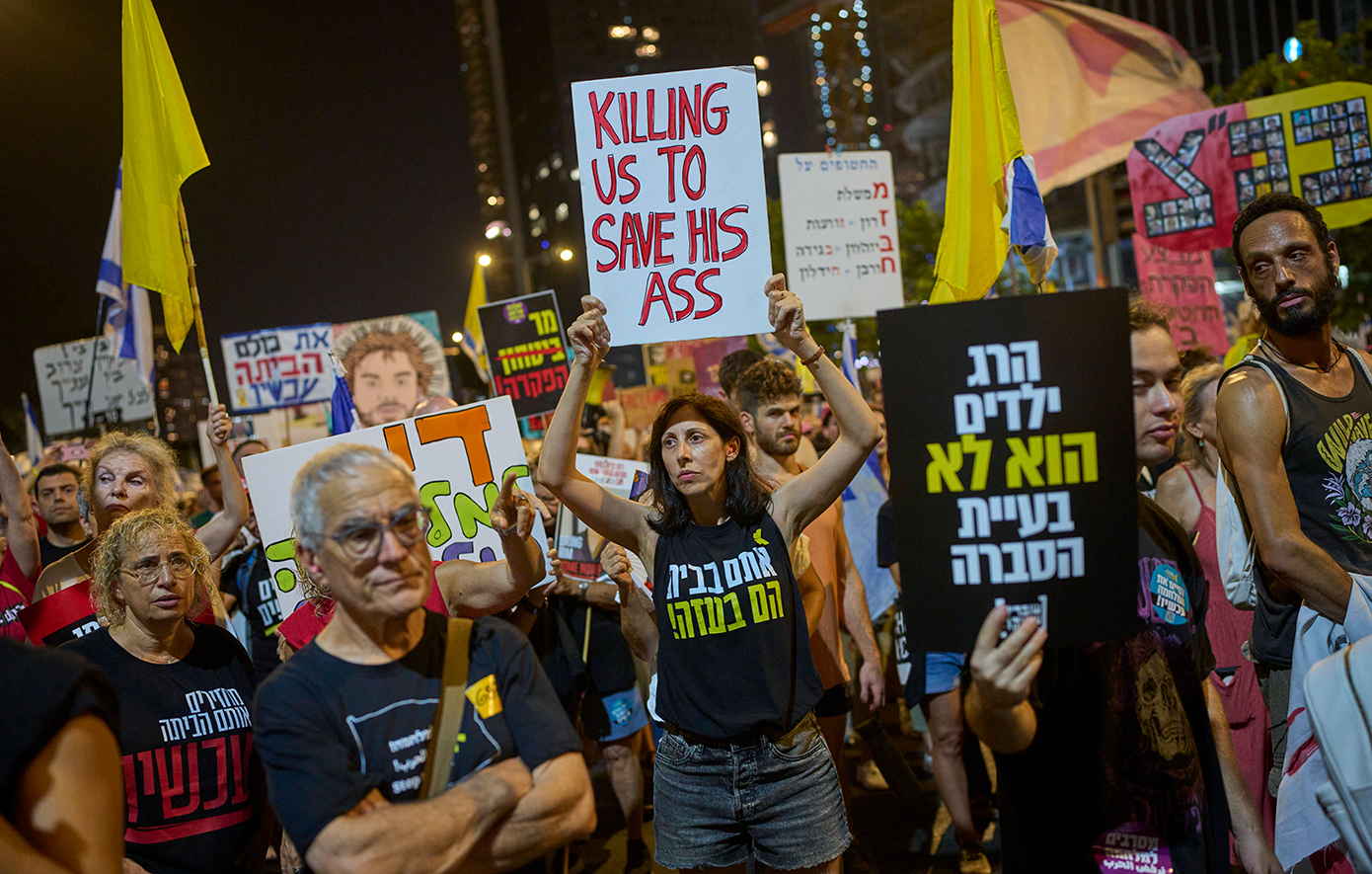 Φλέγεται το Ισραήλ με χιλιάδες Ισραηλινούς να ενώνονται με Παλαιστίνιους, αλλά και Άραβες πολίτες του εβραϊκού κράτους ζητώντας εδώ και τώρα να υπάρξει ειρήνη στη Γάζα. Παράλληλα, κατηγόρησαν τον Μπενιαμίν Νετανιάχου ότι επιδιώκει τη συνέχιση του πολέμου για να παραμείνει στην εξουσία.