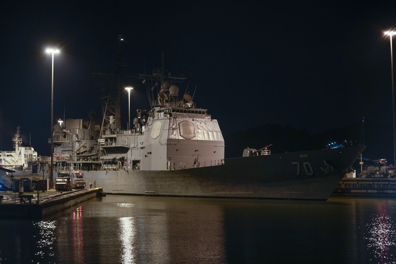 Το πολεμικό πλοίο, με ζωγραφισμένο τον αριθμό 70 με λευκά γράμματα στο πλευρό του, είχε δέσει τις δύο τελευταίες ημέρες στο λιμάνι Ρόντμαν, στην είσοδο της διώρυγας από την πλευρά του Ειρηνικού.