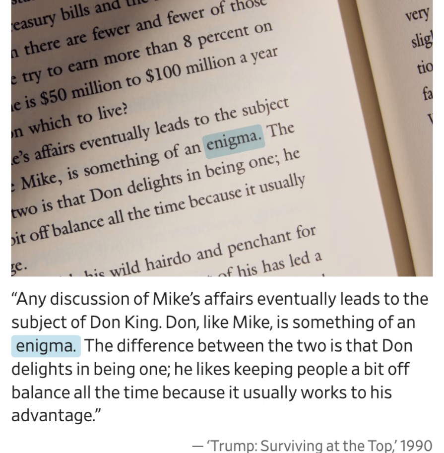 Η επιστολή του Έπσταϊν αναφέρει: «Τα αινίγματα δεν γερνάνε ποτέ, το έχεις προσέξει αυτό;» και κλείνει με τη φράση: «Ένας φίλος είναι ένα υπέροχο πράγμα. Χρόνια Πολλά -και είθε κάθε μέρα να είναι ένα ακόμη υπέροχο μυστικό.» Ο Τραμπ είχε χρησιμοποιήσει τη λέξη «αίνιγμα» για να περιγράψει τον Ντον Κινγκ και τον Μάικ Τάισον στο βιβλίο του το 1990, και τον Νταν Ράδερ στο βιβλίο του το 2004. Σε αναρτήσεις του και σε ομιλίες, ο Τραμπ έχει συχνά χρησιμοποιήσει τη φράση «ένα υπέροχο πράγμα».