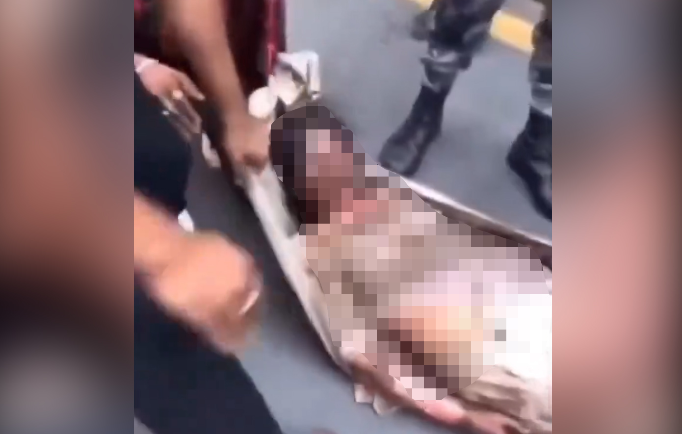 Η εικόνα δείχνει τη Rabi Laxmi Chitrakar που υπέστη σοβαρά εγκαύματα, όταν διαδηλωτές πυρπόλησαν το σπίτι της, να απεγκλωβίζεται από κόσμο, ο οποίος την εναποθέτει στο δρόμο.