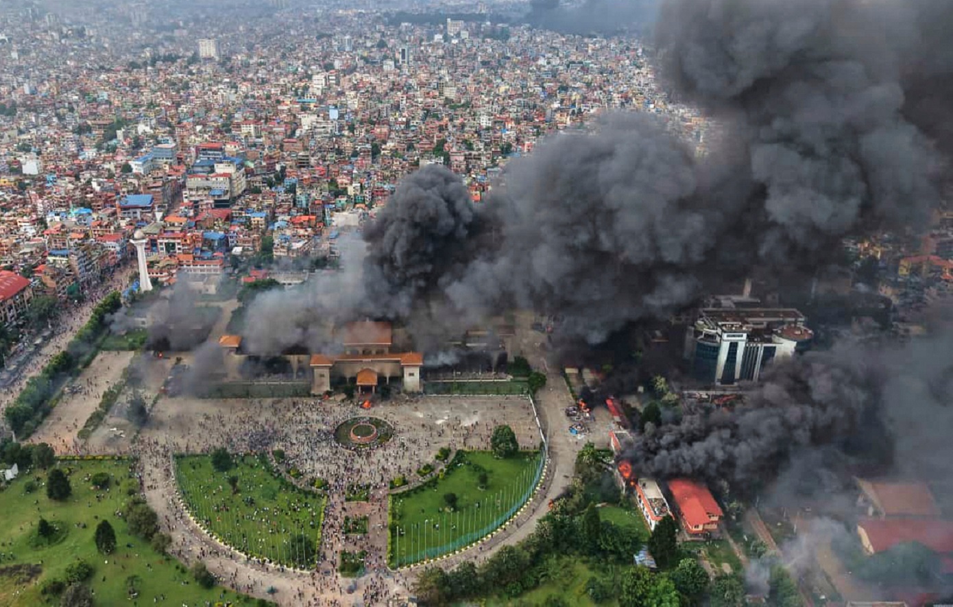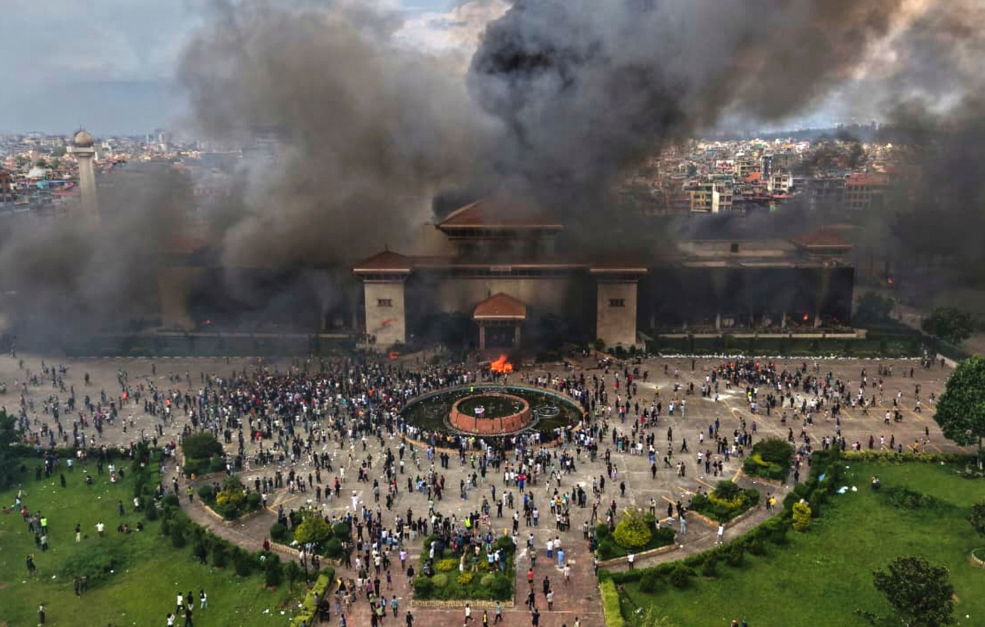 Εκατοντάδες διαδηλωτές εισέβαλαν και έβαλαν φωτιά στο κτίριο της Βουλής, σπάζοντας παράθυρα και ζωγραφίζοντας αντικυβερνητικά συνθήματα στους τοίχους. Το Singha Durbar, μεγάλο συγκρότημα κυβερνητικών γραφείων, επίσης δέχθηκε επίθεση, και το Ανώτατο Δικαστήριο ανακοίνωσε την Τετάρτη ότι αναβάλει επ’ αόριστον όλες τις ακροάσεις λόγω σοβαρών ζημιών.