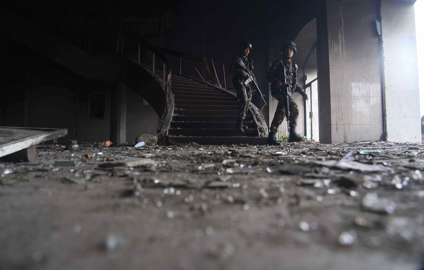 Αξιωματικοί ελέγχουν ταυτότητες σε σημεία ελέγχου στην πρωτεύουσα, προτρέποντας τον κόσμο να παραμείνει στα σπίτια του. «Καμία περιττή μετακίνηση», διαλαλούν με μεγάφωνα. Ωστόσο, κάποιοι νέοι βγήκαν έξω, κρατώντας σακούλες σκουπιδιών και φορώντας μάσκες, καθαρίζοντας τη ζημιά που προκάλεσαν οι διαδηλώσεις.