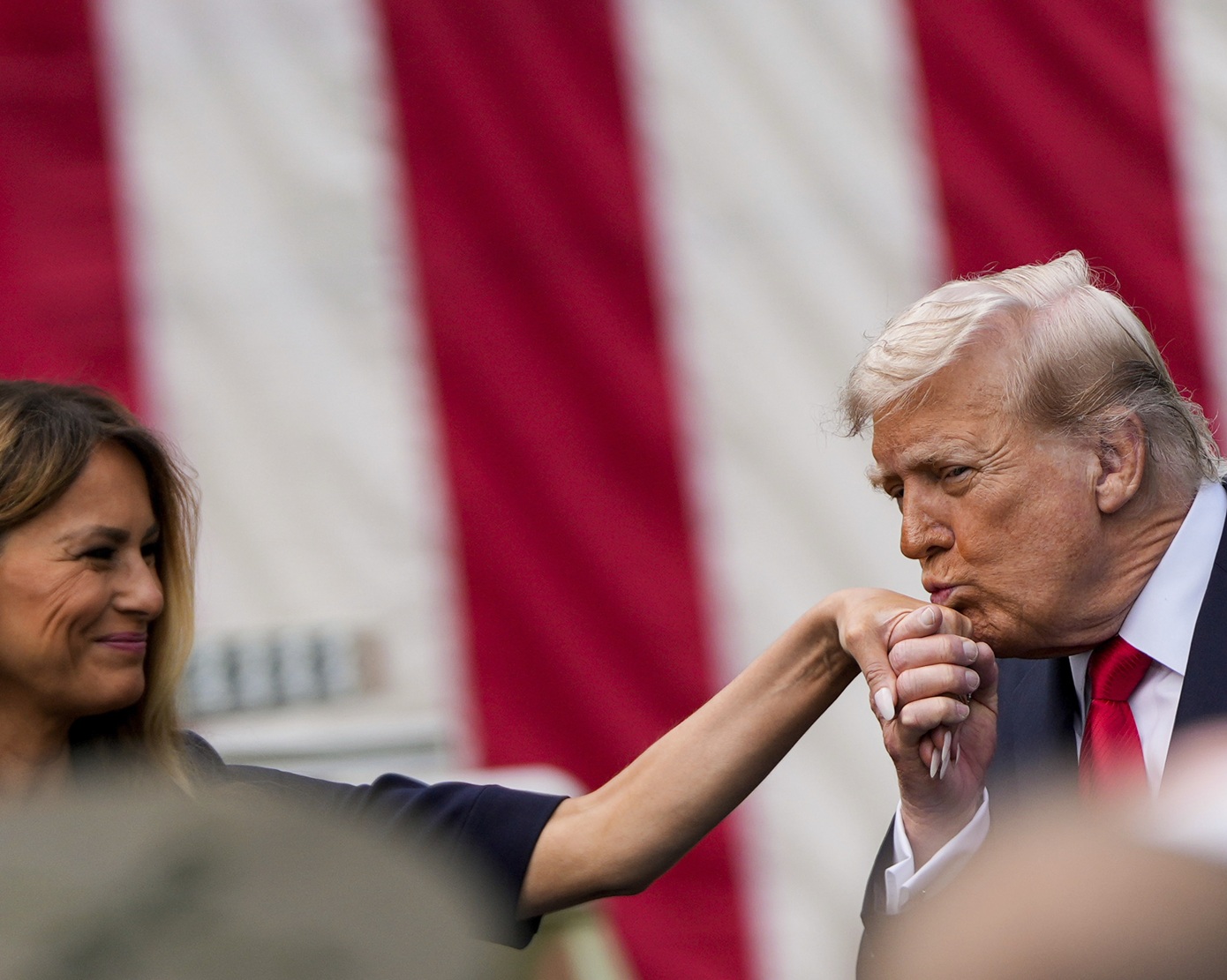 Μια σπάνια δημόσια στιγμή τρυφερότητας μοιράστηκαν ο Ντόναλντ Τραμπ και η σύζυγός του, Μελάνια, στην τελετή μνήμης για τα 24 χρόνια από τις επιθέσεις της 11ης Σεπτεμβρίου.