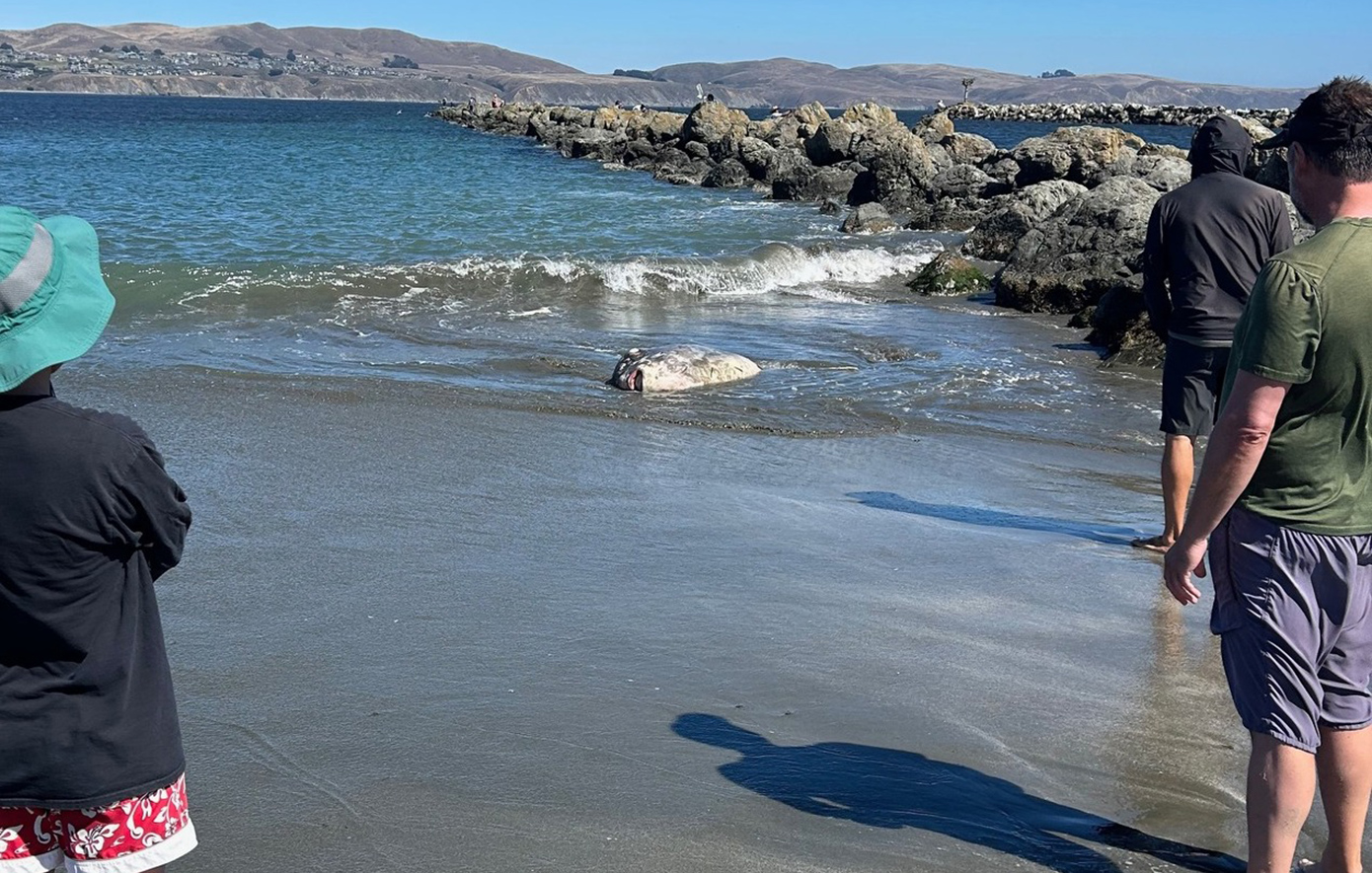 Την ασυνήθιστη εικόνα ανέφερε πρώτος ο Στέφαν Κίεζμπι, συγγραφέας και καθηγητής αγγλικών στο Πανεπιστήμιο Sonoma State. Το πρωί της Κυριακής, μαζεύοντας σκουπίδια από την παραλία, βρέθηκε μπροστά στο τεράστιο πλάσμα κοντά στο δυτικό άκρο της ακτής.