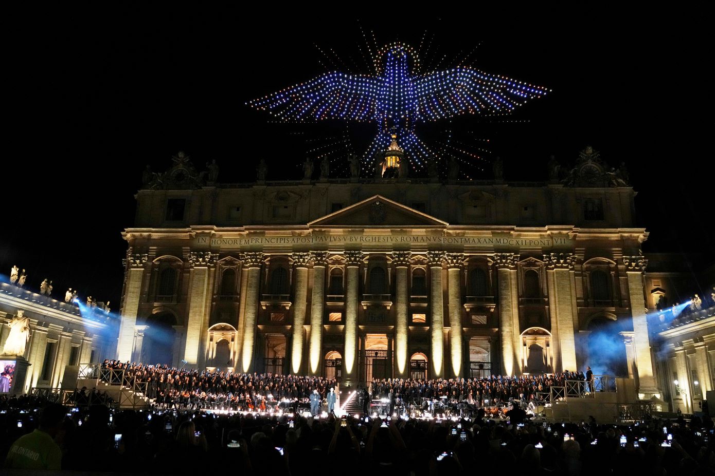 Το Σάββατο το βράδυ, η πλατεία του Αγίου Πέτρου στη Ρώμη πλημμύρισε ξανά από κόσμο. Όχι αυτή τη φορά για να παρακολουθήσει τον λευκό καπνό της εκλογής του νέου Πάπα, Λέοντα ΙΔ΄, αλλά για ένα φαντασμαγορικό θέαμα αφιερωμένο στο Ιωβηλαίο της Καθολικής Εκκλησίας.
