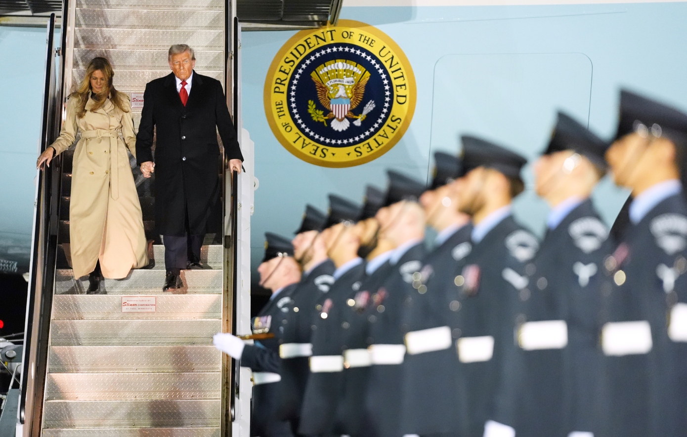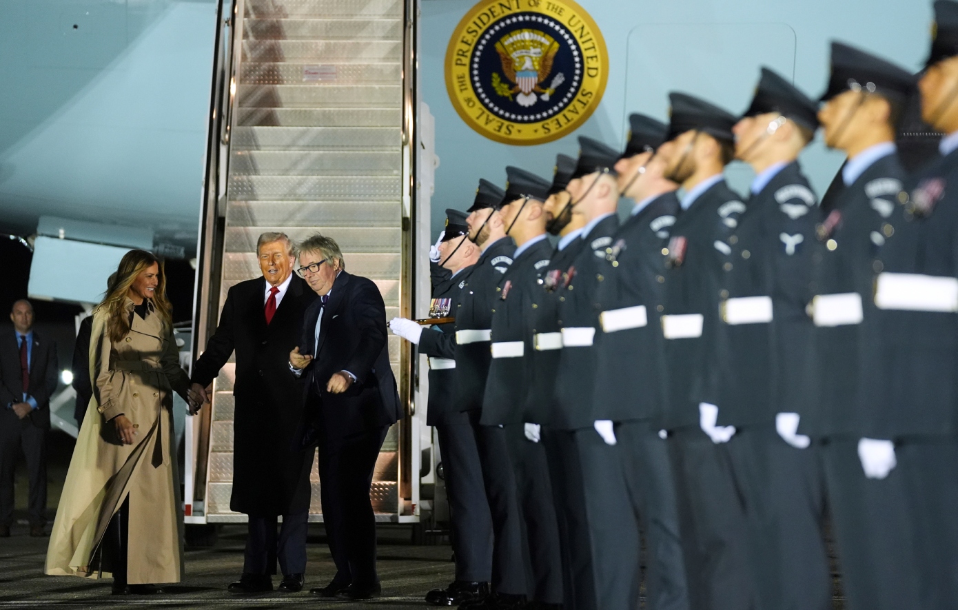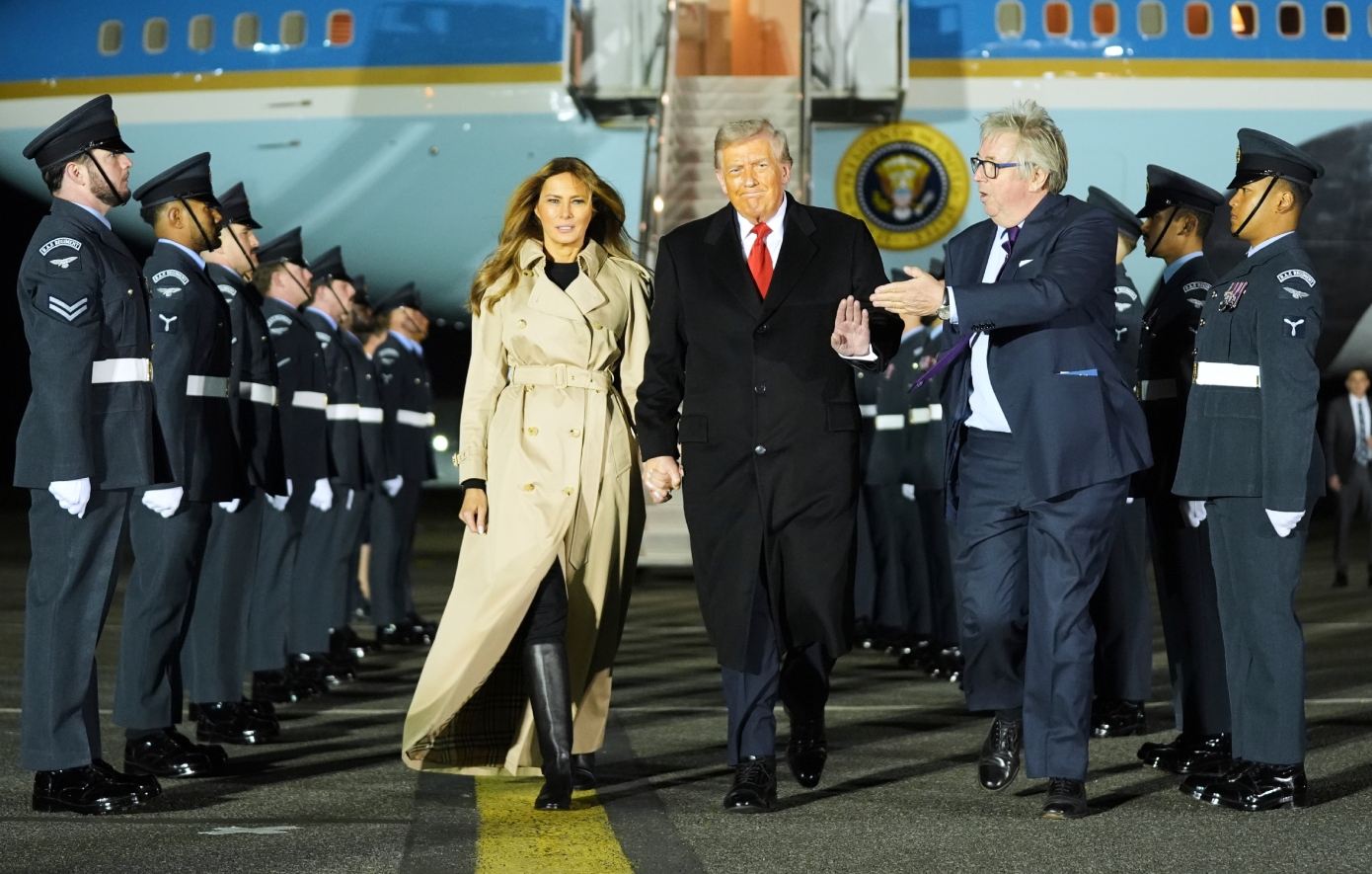 Το προεδρικό ζεύγος των ΗΠΑ διέσχισε τον Ατλαντικό πριν προσγειωθεί στο αεροδρόμιο Στάνστεντ του Έσεξ για τη δεύτερη κρατική επίσκεψη του Τραμπ στο Ηνωμένο Βασίλειο. Μετά την άφιξή τους στο Στάνστεντ, κατευθύνθηκαν στο Κάστρο του Γουίνδσορ, όπου έχει οργανωθεί ένα πολυτελές βασιλικό δείπνο και δεξίωση, με τη Βρετανία, όπως σημειώνουν βρετανικές εφημερίδες, να «τα δίνει όλα» για να προσεγγίσει τον απρόβλεπτο Αμερικανό πρόεδρο.