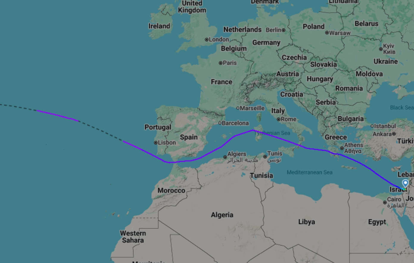 Ενώ η τυπική αεροπορική διαδρομή από το Ισραήλ προς τη Νέα Υόρκη περνά πάνω από τη Γαλλία, το κυβερνητικό αεροσκάφος του Ισραηλινού πρωθυπουργού, το αποκαλούμενο «Φτερά της Σιών», ακολούθησε μια πιο μακρά και κυκλική πορεία πάνω από τη Μεσόγειο, σύμφωνα με ιστότοπους παρακολούθησης πτήσεων όπως το FlightAware αλλά και με πηγή των Financial Times.