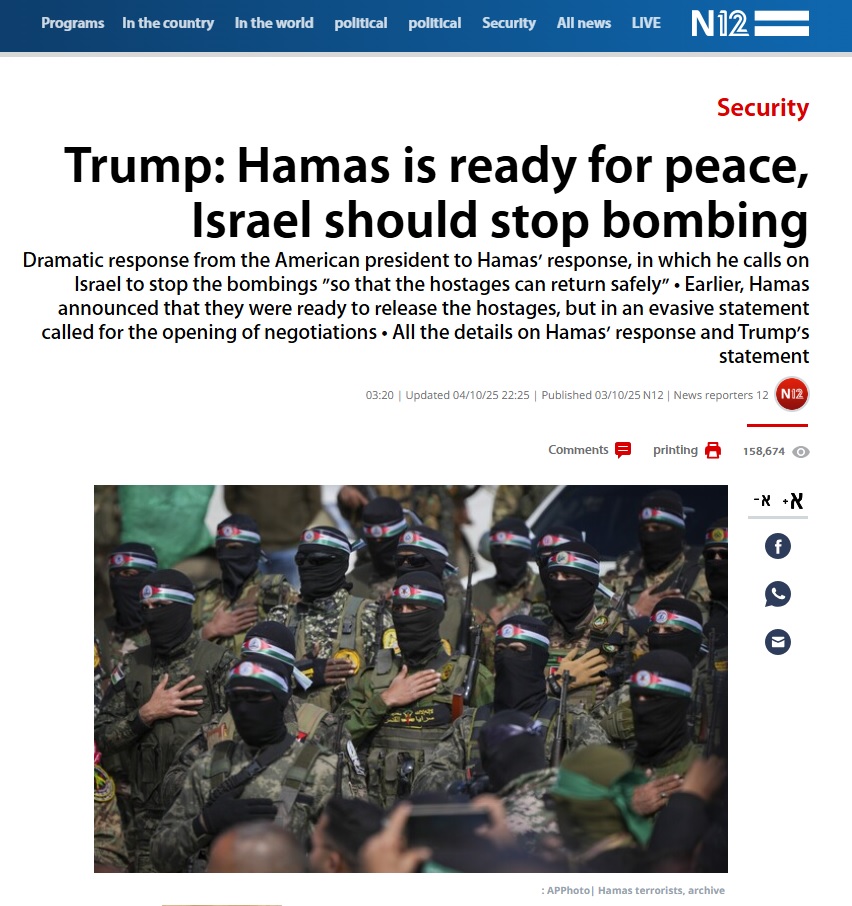 Το μήνυμα της δήλωσης του Ντόναλντ Τραμπ ότι «η Χαμάς είναι έτοιμη για διαρκή ειρήνη» και η εντολή στο Ισραήλ «να σταματήσει αμέσως τους βομβαρδισμούς στη Γάζα» προσπαθούν να αποκωδικοποιήσουν τα ισραηλινά μέσα ενημέρωσης.