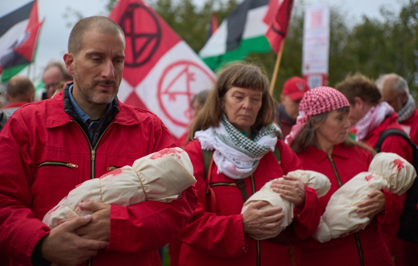 Σύμφωνα με τους διοργανωτές της διαδήλωσης «Κόκκινη Γραμμή», περίπου 250.000 άνθρωποι συμμετείχαν στην κινητοποίηση αυτήν, καλώντας παράλληλα την ολλανδική κυβέρνηση να λάβει μέτρα εναντίον του Ισραήλ.