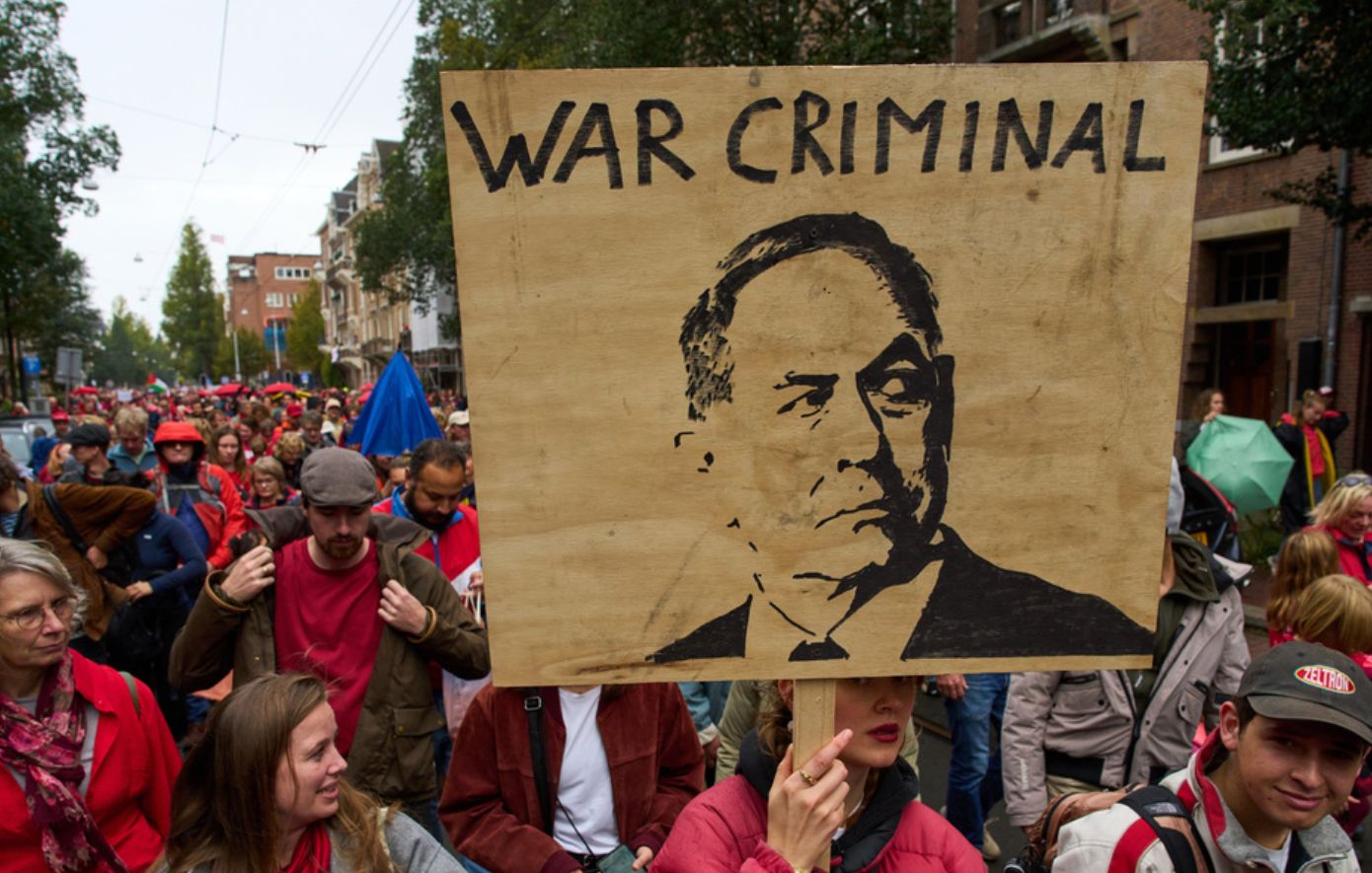 «Αναμένω να επιβάλει κυρώσεις στο Ισραήλ, να σταματήσει κάθε εμπόριο (σ.σ. με το Ισραήλ) και να αναγνωρίσει το κράτος της Παλαιστίνης», είπε ο 68χρονος Σεμπάστιαν Πόος, που έφτασε στο Άμστερνταμ από το Αϊντχόφεν. «Ντρέπομαι βαθύτατα για αυτά που κάνει η κυβέρνηση, για τη στάση που έχει υιοθετήσει», είπε ο καλλιτέχνης, που φορούσε έναν κόκκινο μπερέ.