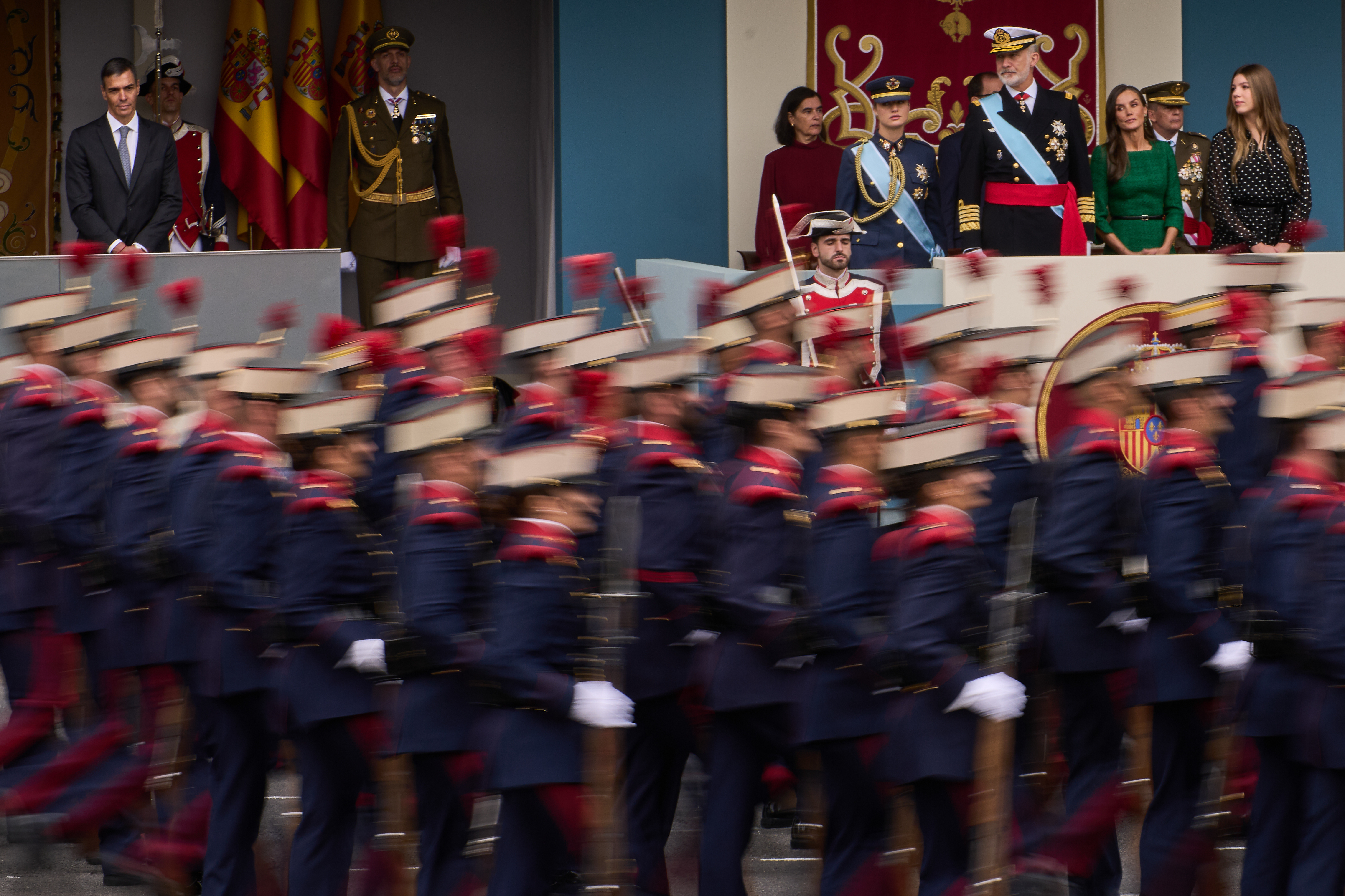 Το κεντρικό πρόσωπο της ημέρας ήταν η Βασιλική Οικογένεια, η οποία έδωσε το «παρών» σε πλήρη σύνθεση για πρώτη φορά από το 2020. Ο Βασιλιάς Φελίπε ΣΤ’ και η Βασίλισσα Λετίθια, συνοδευόμενοι από την Πριγκίπισσα Λεονόρ και την Ινφάντα Σοφία, παρακολούθησαν την τελετή, στην οποία συμμετείχαν περίπου 4.000 στελέχη των Ενόπλων Δυνάμεων, της Εθνοφυλακής και της Εθνικής Αστυνομίας.