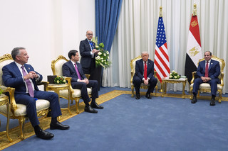 Ο Τραμπ συναντήθηκε με τον Αλ Σίσι και έκαναν από κοινού δηλώσεις στους δημοσιογράφους, τονίζοντας τη σημασία της διάσκεψης.