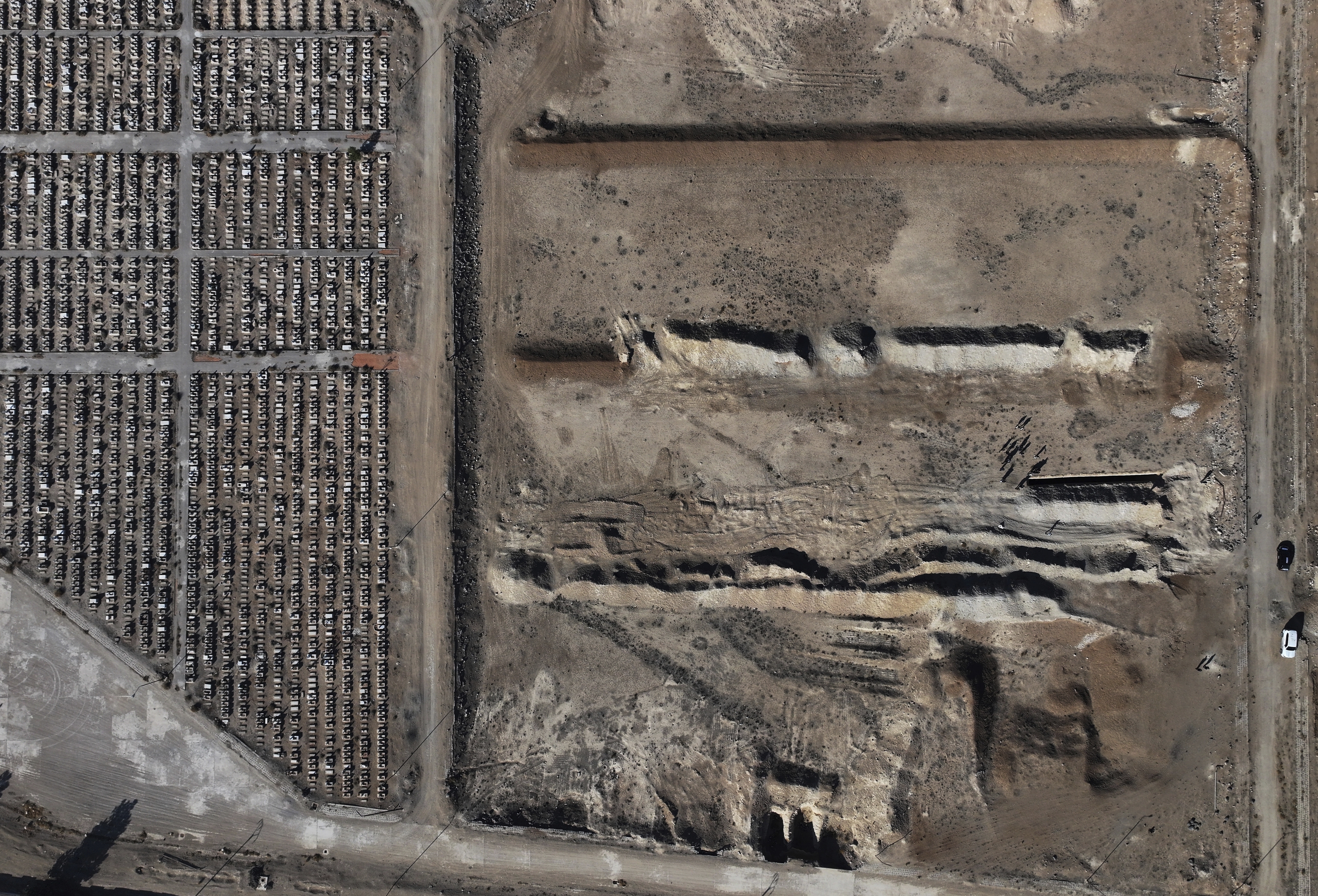 Με τουλάχιστον 34 τάφρους συνολικού μήκους δύο χιλιομέτρων, ο τάφος στην έρημο της Ντουμαΐρ είναι ένας από τους μεγαλύτερους που δημιουργήθηκαν κατά τη διάρκεια του συριακού εμφυλίου, σύμφωνα με το Reuters. Οι μαρτυρίες και οι διαστάσεις δείχνουν ότι δεκάδες χιλιάδες άνθρωποι μπορεί να είναι θαμμένοι εκεί.