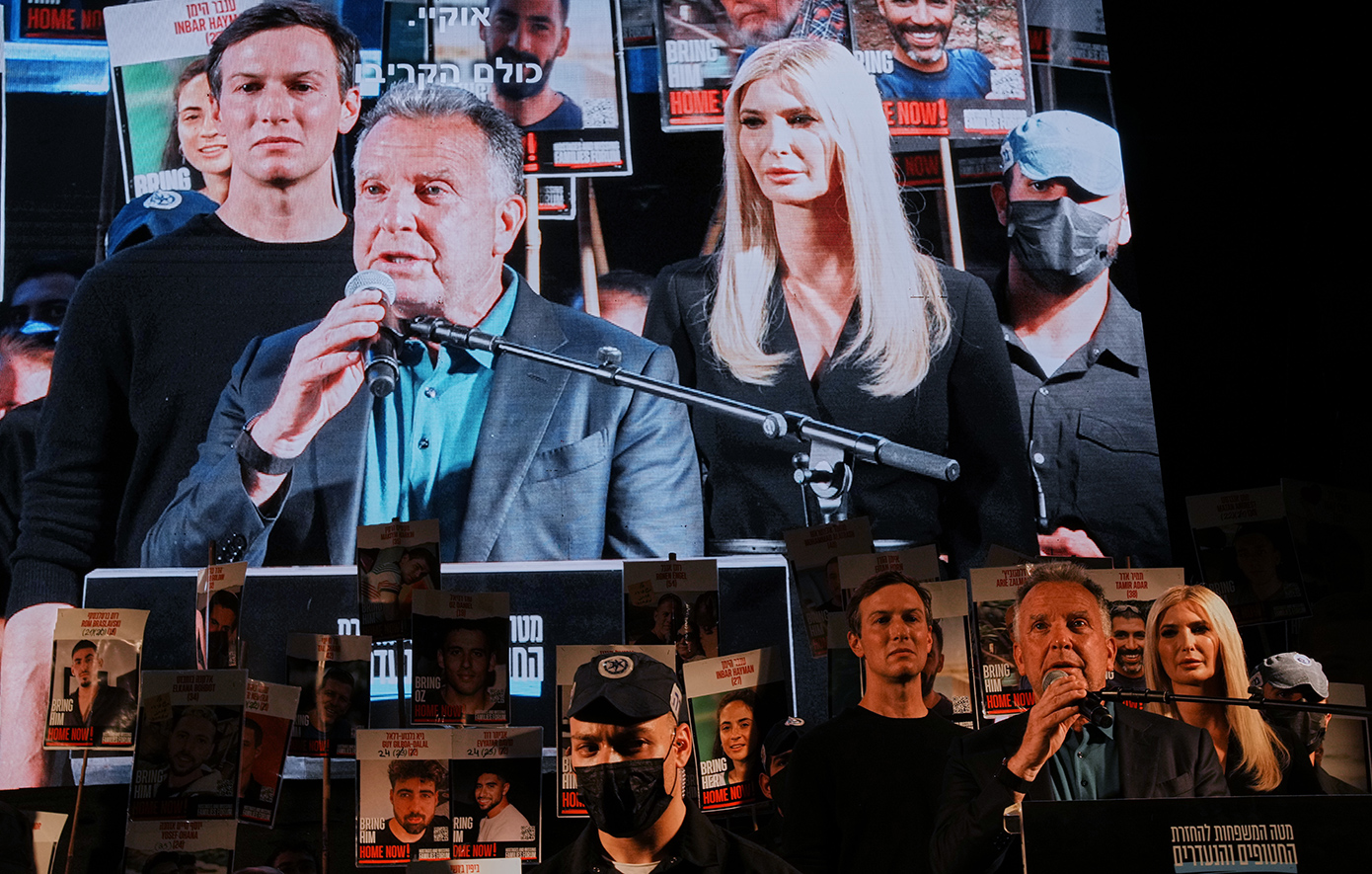 Καθώς η αμερικανική κυβέρνηση παρουσίαζε την εκεχειρία στη Γάζα ως διπλωματική επιτυχία, ο Κούσνερ –και γαμπρός του Τραμπ– εμφανίστηκε στην αποκαλούμενη «πλατεία των ομήρων» στο Τελ Αβίβ. Εκεί απευθύνθηκε σε ένα συγκινημένο και ταυτόχρονα θυμωμένο πλήθος, το οποίο νωρίτερα είχε αποδοκιμάσει την αναφορά στον πρωθυπουργό, Μπενιαμίν Νετανιάχου, πριν ξεσπάσει σε ιαχές: «Ευχαριστούμε, Τραμπ!».