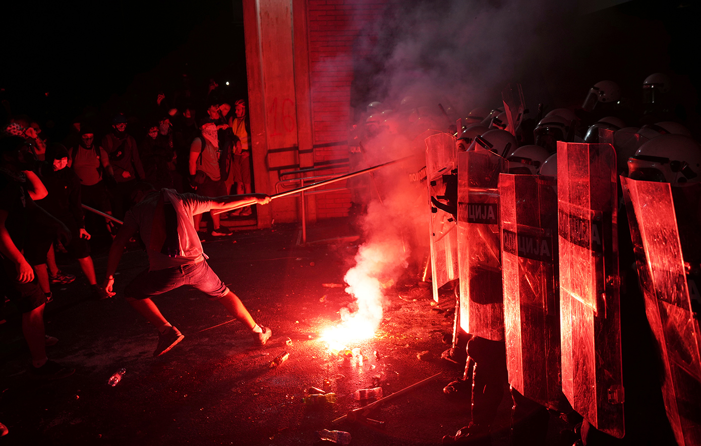 Το ΕΚ «καταδικάζει έντονα το κύμα κρατικής βίας, εκφοβισμού και αδιάκριτων συλλήψεων εναντίον ειρηνικών διαδηλωτών, δημοσιογράφων, οργανώσεων της κοινωνίας των πολιτών και εκπροσώπων της αντιπολίτευσης στη Σερβία. Καταδικάζονται επίσης «οι εκστρατείες στιγματισμού, εκφοβισμού και η κατάχρηση προσωπικών δεδομένων για την δυσφήμιση των διαδηλωτών».