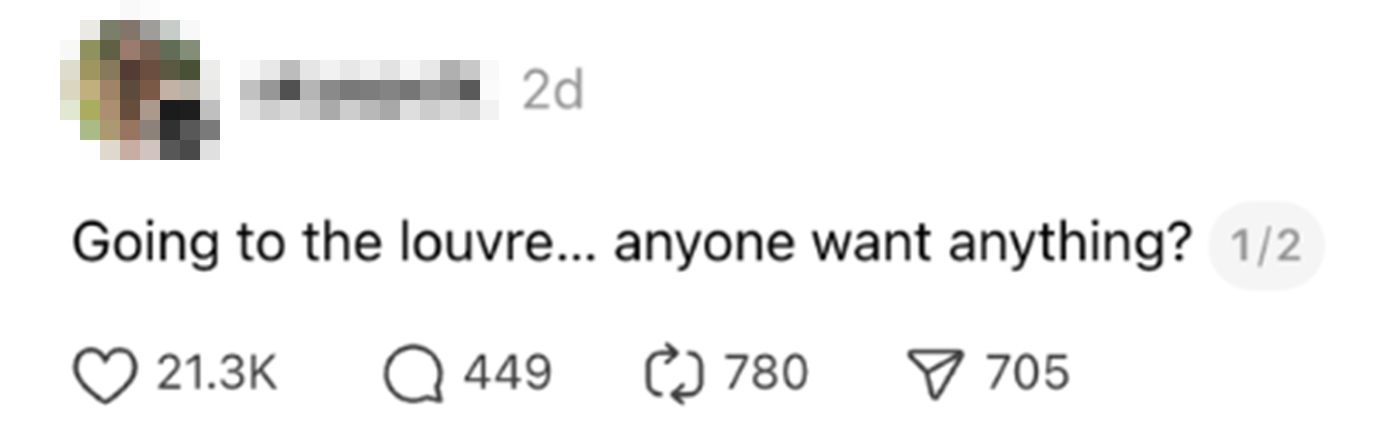 «Πάω στο Λούβρο, θέλει κανείς τίποτα;», έγραψε μία χρήστης των social media.