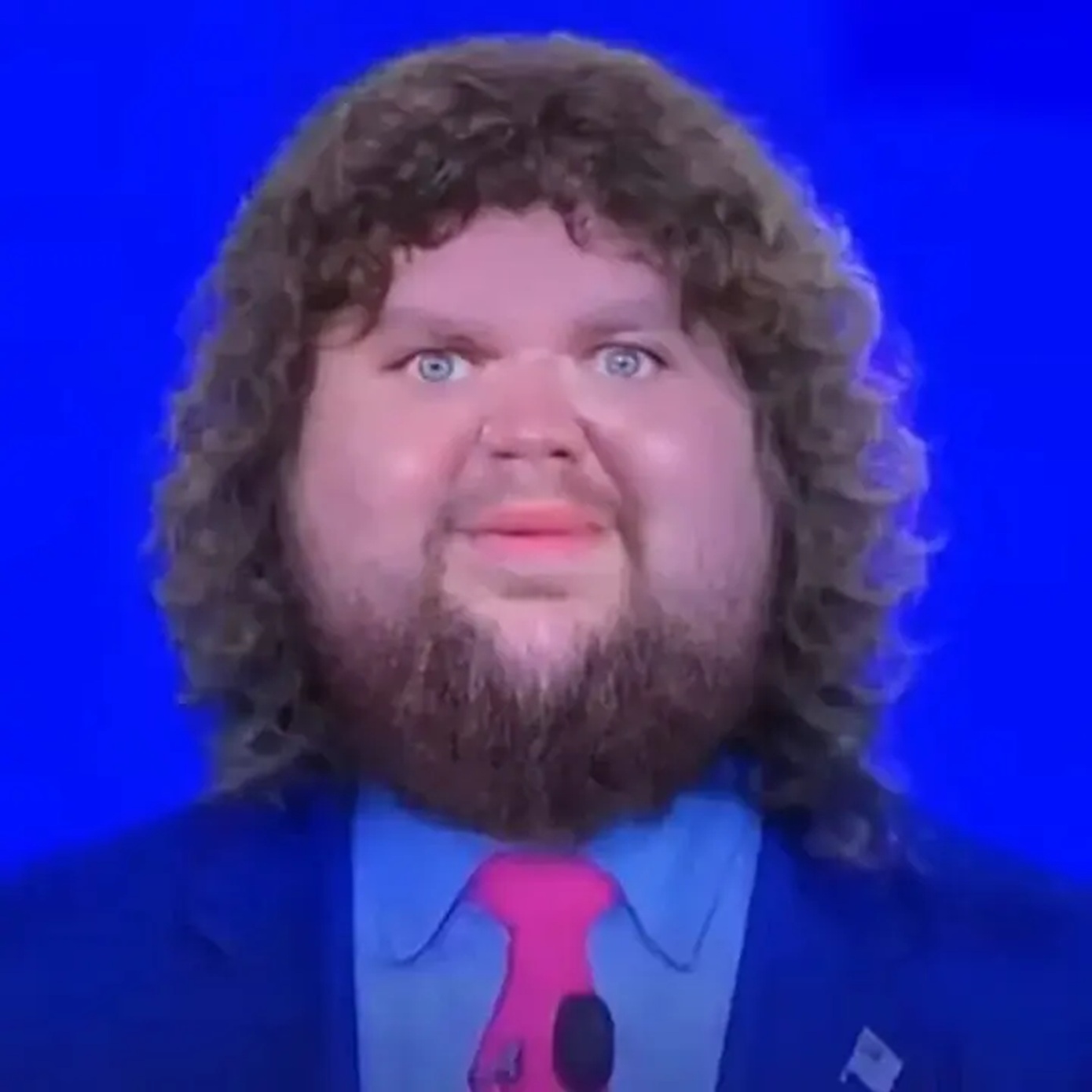 Ο Ρεπουμπλικανός,φόρεσε μια πυκνή σγουρή καφέ περούκα, την οποία συνδύασε με κόκκινη γραβάτα και μπλε σακάκι, σε σαφή μίμηση της φουσκωμένης, «χαζής» εκδοχής του εαυτού του που χρησιμοποιείται δημοφιλώς από διαδικτυακά τρολ.