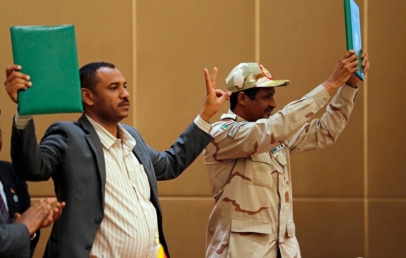 Υπό πίεση από τις ΗΠΑ, το Ηνωμένο Βασίλειο, τη Σαουδική Αραβία και τα ΗΑΕ, οι στρατηγοί και οι πολίτες συμφώνησαν σε μεταβατική λύση υπό αφρικανική μεσολάβηση. Για δύο χρόνια υπήρξε εύθραυστη συνύπαρξη στρατιωτικού συμβουλίου και πολιτικής κυβέρνησης.