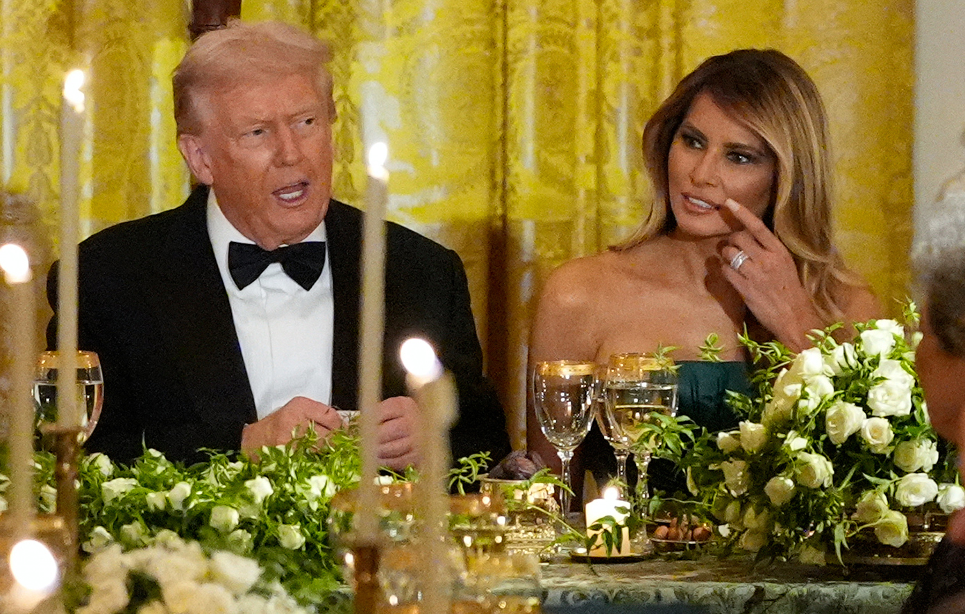 Η Μελάνια Τραμπ έκλεψε τις εντυπώσεις το βράδυ της Τρίτης 18 Νοεμβρίου, φορώντας ένα εντυπωσιακό στράπλες φόρεμα σε σμαραγδί χρώμα που παραπέμπει στη σημαία της Σαουδικής Αραβίας -κατά το επίσημο δείπνο στην Ανατολική Αίθουσα του Λευκού Οίκου προς τιμήν του Πρίγκιπα Διαδόχου, Μοχάμεντ μπιν Σαλμάν.