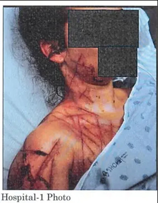 Σοκαριστικές φωτογραφίες που περιλαμβάνονται στα έγγραφα του δικαστηρίου δείχνουν την Γκριν με βαθιές και αιματηρές τομές σε σώμα και πρόσωπο. Οι ανακριτές αποκάλυψαν επίσης ότι η Γκριν ισχυρίστηκε ότι οι υποτιθέμενοι επιτιθέμενοι την απείλησαν με όπλο, σύμφωνα με την Sun.