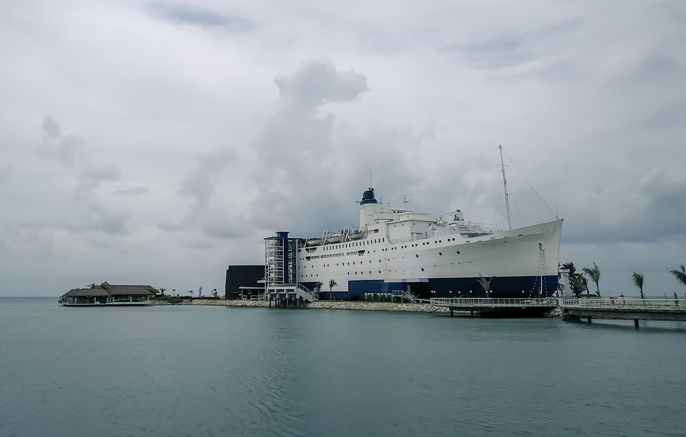 Το 2010 απέκτησε νέα ζωή στη στεριά, όταν ένας επιχειρηματίας από τη Σιγκαπούρη, ο Έρικ Σο, επένδυσε 18 εκατομμύρια δολάρια με στόχο να το μετατρέψει σε πολυτελές ξενοδοχείο. Ο Σο επέλεξε ως μόνιμη τοποθεσία του πλοίου τη Νήσο Μπιντάν της Ινδονησίας, σε ένα νησί σε σχήμα άγκυρας, σε μικρή απόσταση από τη Σιγκαπούρη. Η διαδικασία για να μεταφερθεί το πλοίο στη στεριά διήρκεσε επτά εβδομάδες, κατά τις οποίες ο κινητήρας αφαιρέθηκε και το εσωτερικό του ανακατασκευάστηκε πλήρως. Ο ιδιοκτήτης φρόντισε να διατηρηθεί η ιστορική του ταυτότητα, συμπεριλαμβανομένων των τεσσάρων σωστικών λέμβων που εξακολουθούν να κρέμονται από αλυσίδες στο μέσον του πλοίου, καθώς και ενός χώρου-μουσείου του παλιού μηχανοστασίου. «Σε ό,τι κάναμε, προσπαθούσαμε να ενσωματώσουμε ναυτικά στοιχεία», δήλωσε.
