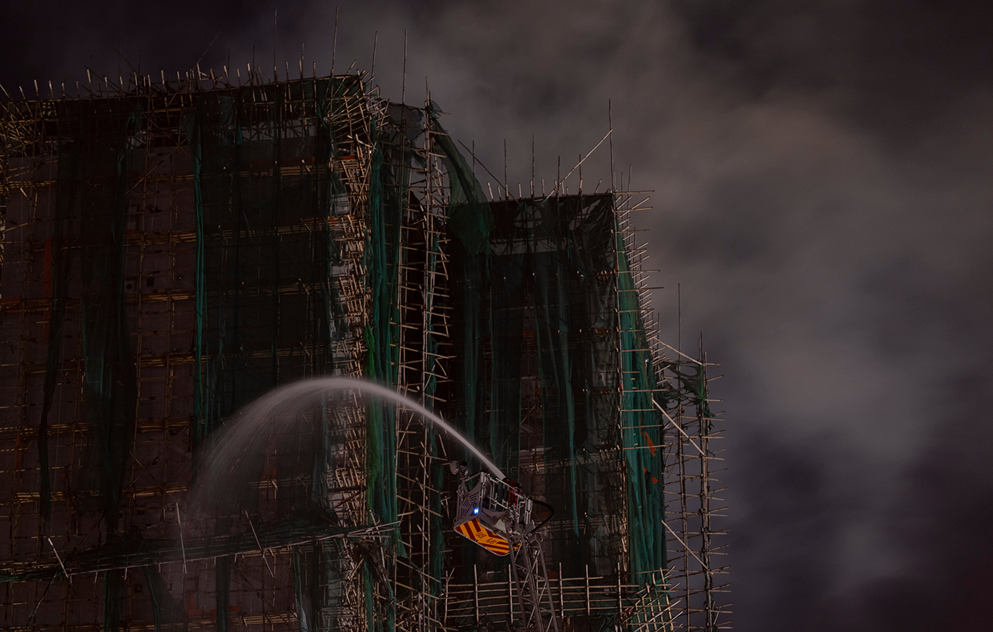 Η φωτιά ξέσπασε το απόγευμα της Τετάρτης 26 Νοεμβρίου και επεκτάθηκε γρήγορα, επηρεάζοντας επτά από τους οκτώ πύργους του συγκροτήματος. Οι επιχειρήσεις κατάσβεσης ολοκληρώθηκαν την Παρασκευή το πρωί, περίπου δύο ημέρες μετά την εκδήλωση της πυρκαγιάς, με τα υπολείμματα των μπαμπού σκαλωσιών να παραμένουν κατεστραμμένα και εμφανή γύρω από τα κτίρια.