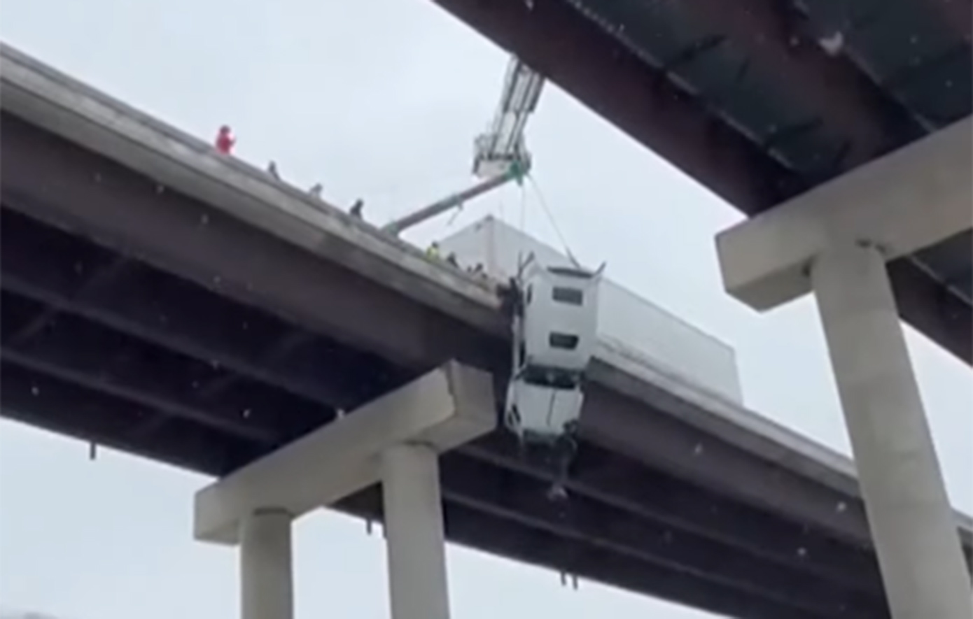 Από βέβαιο θάνατο σώθηκε ένας οδηγός φορτηγού που κυριολεκτικά βρέθηκε να κρέμεται για περίπου πέντε ώρες από μία γέφυρα ύψους 30 μέτρων ύστερα από ένα τροχαίο σε αυτοκινητόδρομο στη Δυτική Βιρτζίνια.