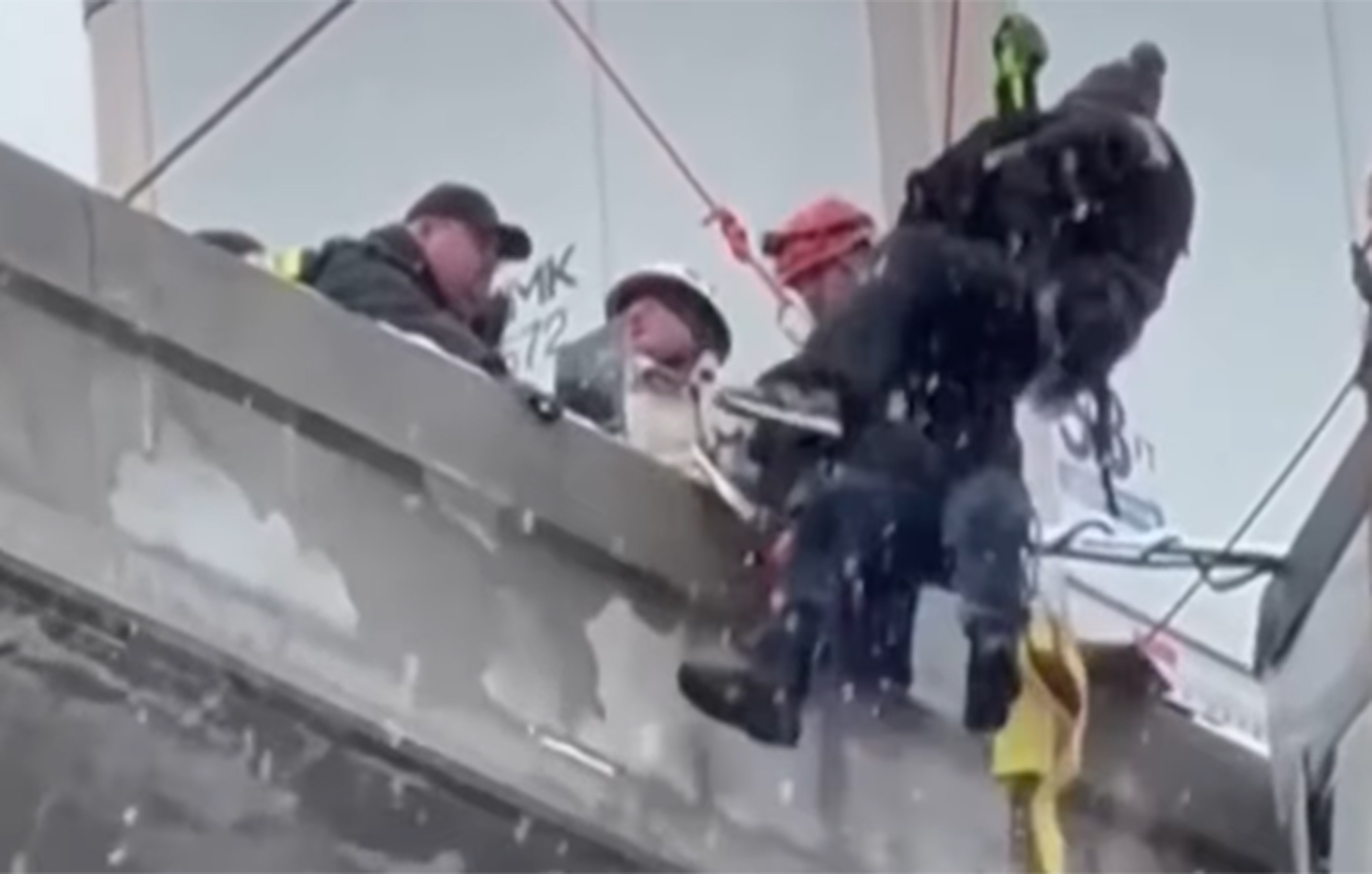 Σύμφωνα με τις μαρτυρίες των διασωστών, τεχνικοί από διάφορα τμήματα έστησαν τρία πολύπλοκα συστήματα σχοινιών, χρησιμοποιώντας δύο βαριά οχήματα ρυμούλκησης, όπου το ένα λειτούργησε σαν άγκυρα πάνω στη γέφυρα και το άλλο χρησιμοποιήθηκε για να συγκρατήσει το φορτηγό. Στη συνέχεια, ένας διασώστης κατέβηκε στο ύψος της καμπίνας και κατάφερε να απεγκλωβίσει τον οδηγό που είχε παραμείνει εκεί για περίπου πέντε ώρες.