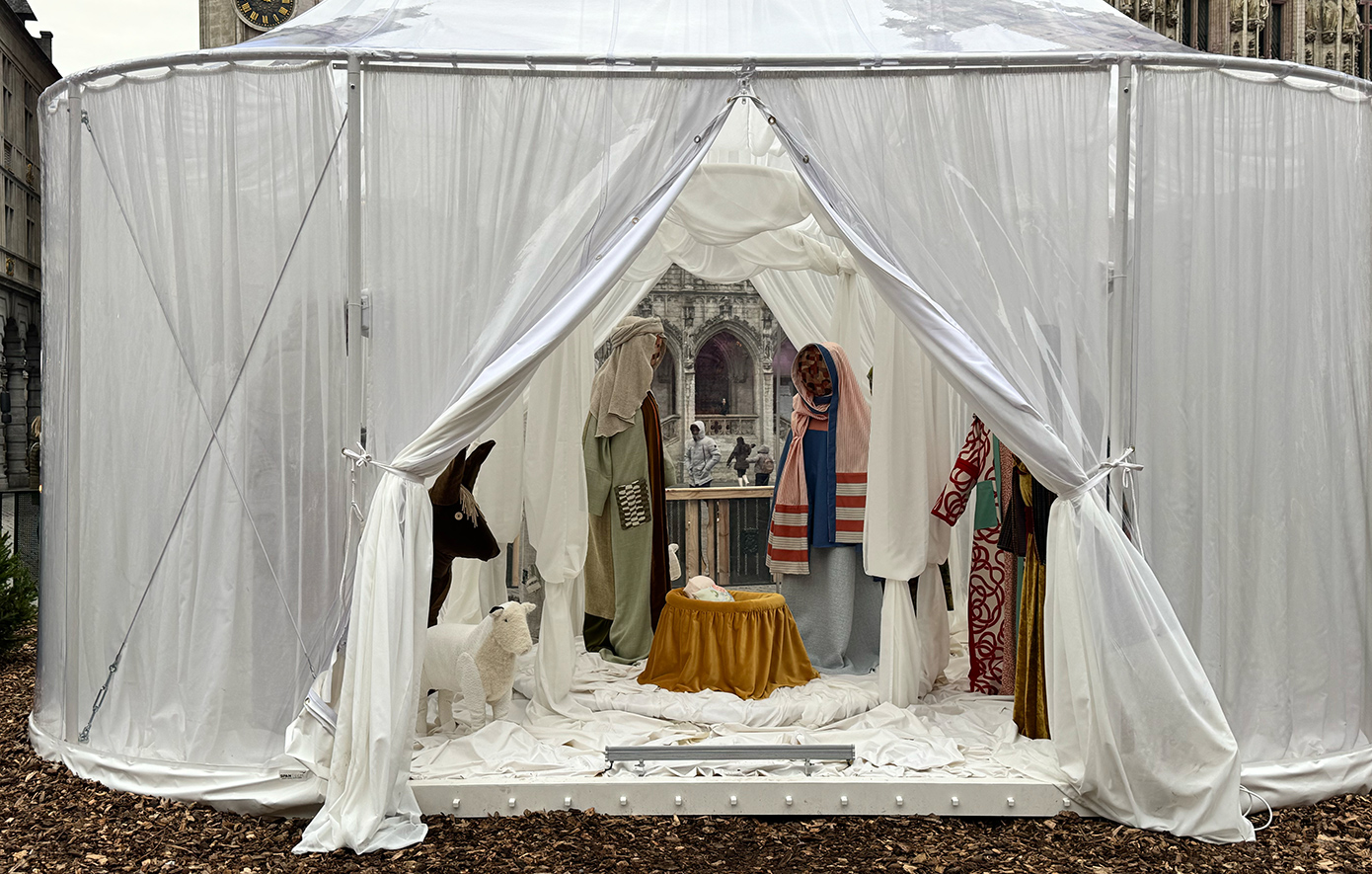 Το έργο, με τίτλο «Fabrics of the Nativity», δημιουργήθηκε από την τοπική καλλιτέχνιδα Βικτόρια-Μαρία Γκέιερ και έγινε κατόπιν παραγγελίας των Καθεδρικών Ναών του Αγίου Μιχαήλ και της Αγίας Γκουντούλα.