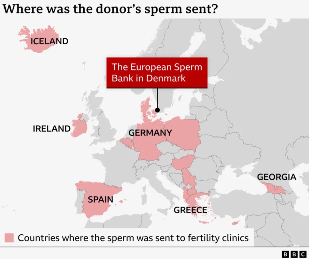 Μεταξύ 2006 και 2022, αυτό το σπέρμα πουλήθηκε σε 67 κλινικές σε 14 χώρες, ανάμεσα στις οποίες και η Ελλάδα, σύμφωνα με τον DR και το BBC.