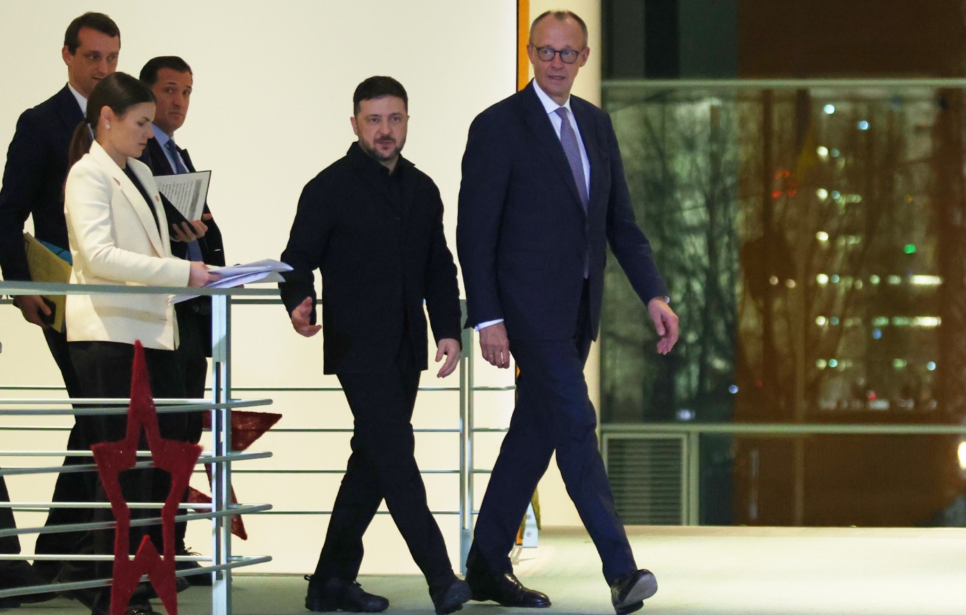 «Ό,τι έχουν θέσει οι ΗΠΑ στο τραπέζι εδώ στο Βερολίνο σε όρους νομικών και υλικών εγγυήσεων είναι πραγματικά σημαντικό», δήλωσε ο Μερτς σε κοινή συνέντευξη Τύπου με τον πρόεδρο της Ουκρανίας, Βολοντίμιρ Ζελένσκι, μετά από ώρες συνομιλιών με Αμερικανούς διαπραγματευτές.