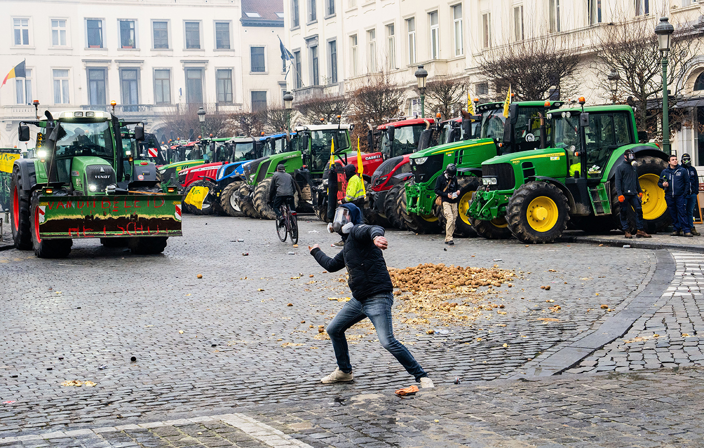 Σε πεδίο μάχης μετατράπηκαν οι Βρυξέλλες το μεσημέρι της Πέμπτης, καθώς εκατοντάδες τρακτέρ και χιλιάδες αγρότες έφτασαν στην πόλη πριν από τη Σύνοδο Κορυφής των ηγετών της ΕΕ.