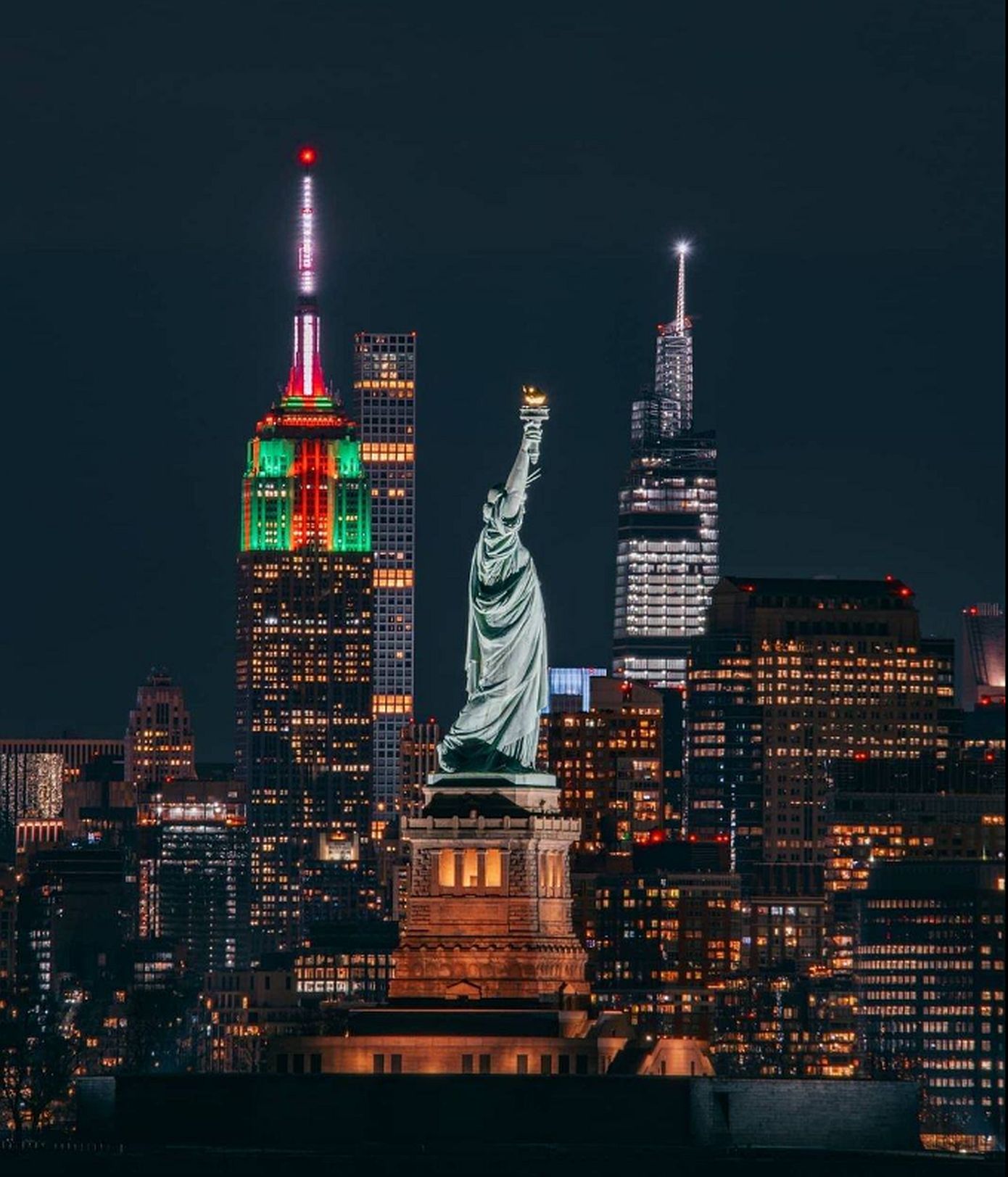 Το εμβληματικό Empire State Building της Νέας Υόρκης φωταγωγήθηκε σε πράσινο και κόκκινο χρώμα, σηματοδοτώντας την εορταστική περίοδο των Χριστουγέννων