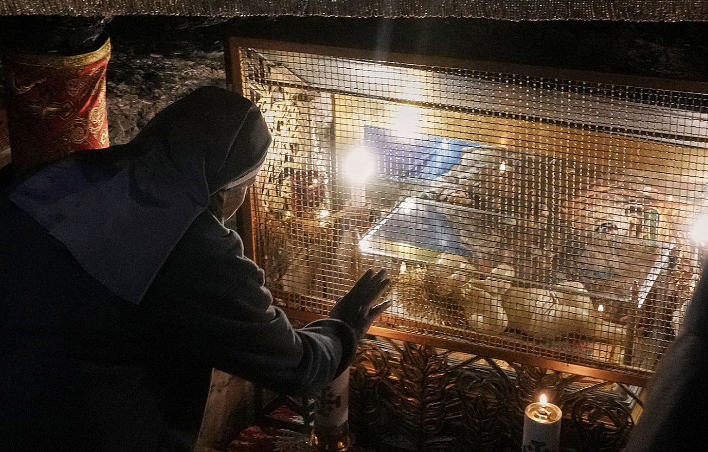 Οι προσκυνητές συρρέουν στη φημισμένη τοποθεσία του στάβλου όπου γεννήθηκε ο Ιησούς στον ναό της Γέννησης.