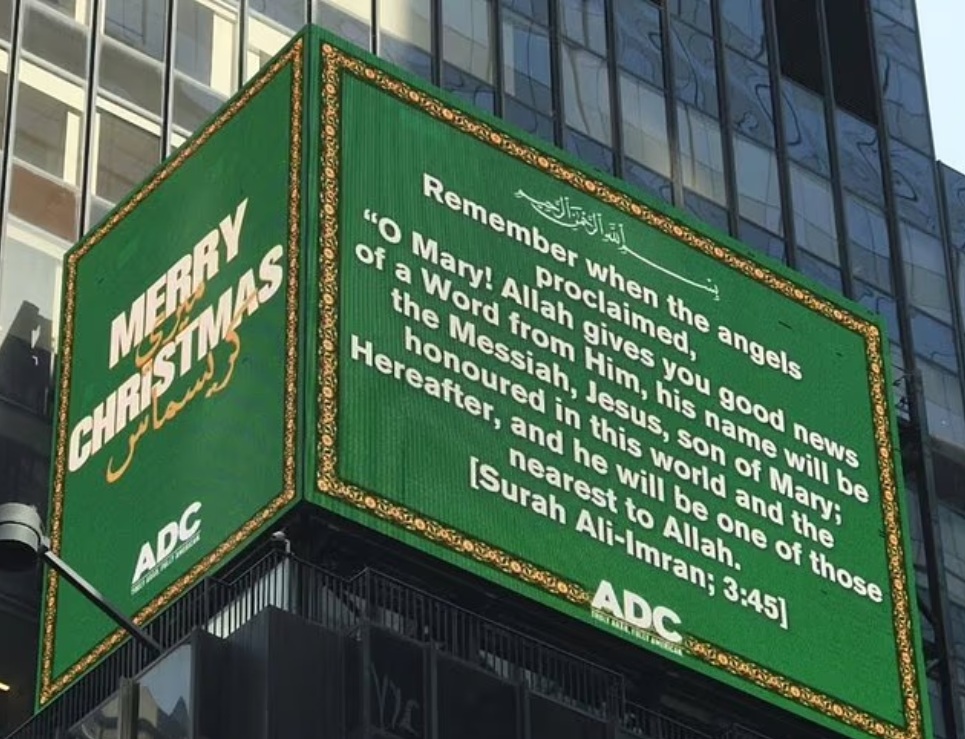 «Θυμήσου όταν οι άγγελοι είπαν: “Ω Μαριάμ! Ο Αλλάχ σου αναγγέλλει έναν Λόγο από Αυτόν· το όνομά του θα είναι ο Μεσσίας, ο Ιησούς, γιος της Μαριάμ· τιμημένος σε αυτόν τον κόσμο και στον άλλο και από εκείνους που βρίσκονται πλησιέστερα στον Αλλάχ”», ανέφερε το εδάφιο. Η φράση «Καλά Χριστούγεννα» συνόδευε το κείμενο τόσο στα αραβικά όσο και στα αγγλικά.