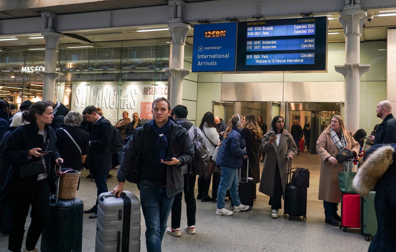 Στον σταθμό Γκαρ ντυ Νορ στο Παρίσι, σημείο αναχώρησης των τρένων της Eurostar προς το Λονδίνο, η ακύρωση όλων των σιδηροδρομικών δρομολογίων προς τη βρετανική πρωτεύουσα αύξησε τον κόσμο που έχει συγκεντρωθεί στο κάτω μέρος της αίθουσας επιβατών που προορίζεται για τρένα προς το Ηνωμένο Βασίλειο.