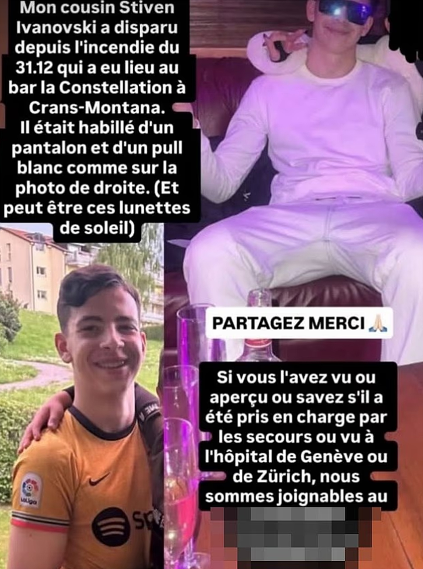 Συγγενείς των αγνοούμενων νέων απηύθυναν έκκληση μέσω της Daily Mail, τονίζοντας ότι δεν έχουν καμία ενημέρωση από την ελβετική αστυνομία, ενώ απάντησαν και σε όσους έσπευσαν να κατηγορήσουν τους ίδιους για ανευθυνότητα, επειδή άφησαν τα παιδιά τους να διασκεδάσουν το βράδυ της Πρωτοχρονιάς.