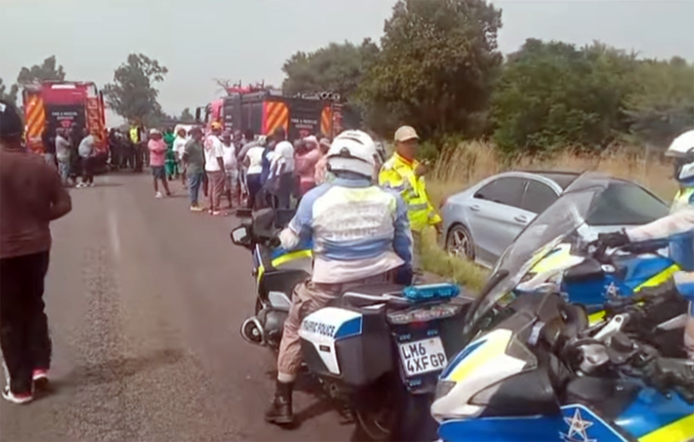 Μέλη των υπηρεσιών αντιμετώπισης εκτάκτων αναγκών βρίσκονται στο σημείο, ενώ η Νότια Αφρική διαθέτει επιβαρυμένο ιστορικό στην οδική ασφάλεια, το οποίο η κυβέρνηση επιχειρεί να αντιμετωπίσει.