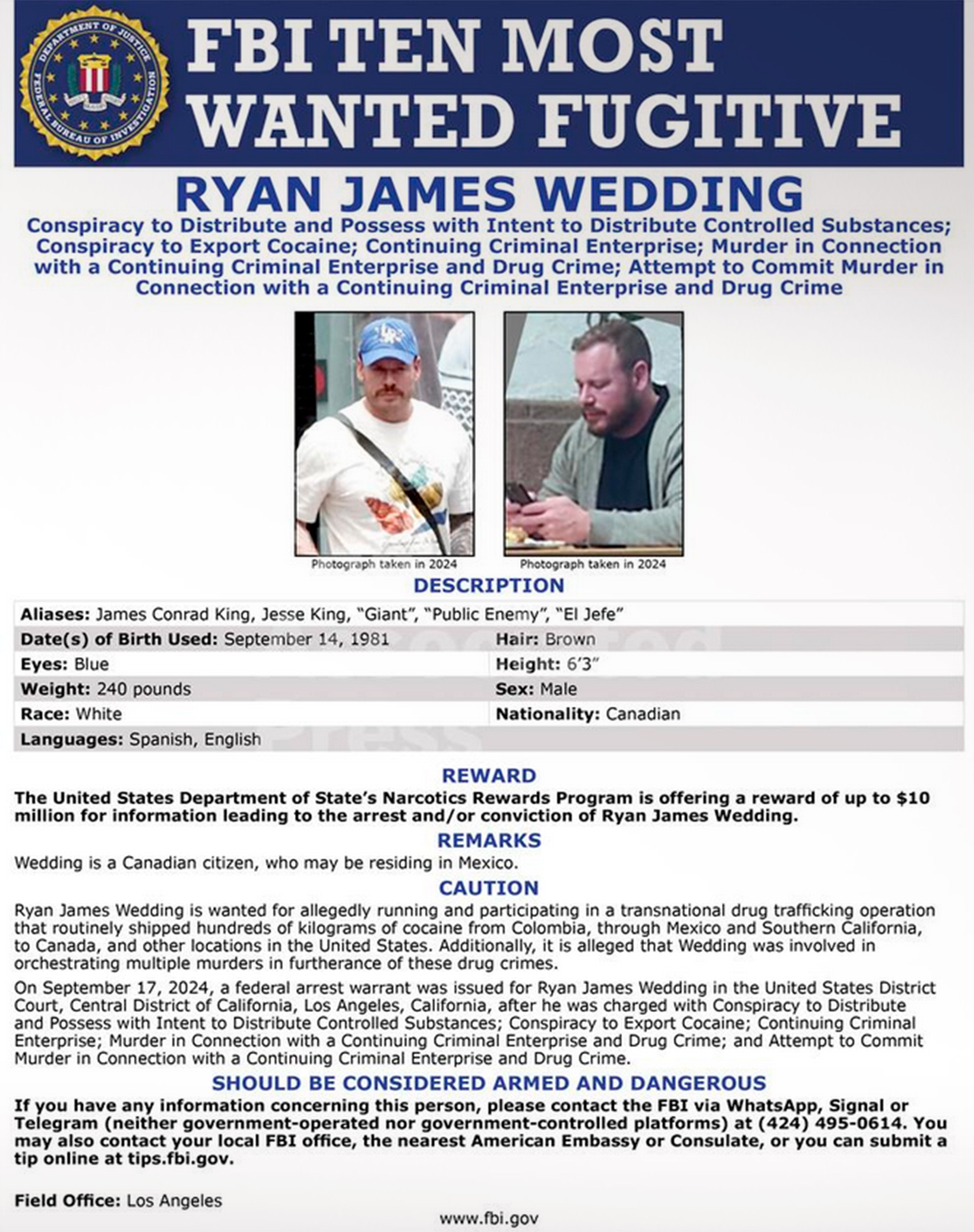 Σύμφωνα με το NBC NEWS, κατηγορείται ότι διηύθυνε οργάνωση υπεύθυνη για τη μεταφορά περίπου 60 τόνων κοκαΐνης ετησίως στο Λος Άντζελες μέσω φορτηγών από το Μεξικό.