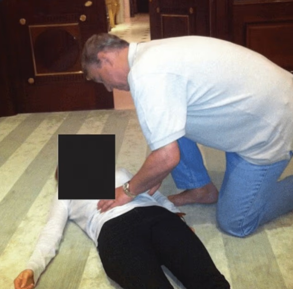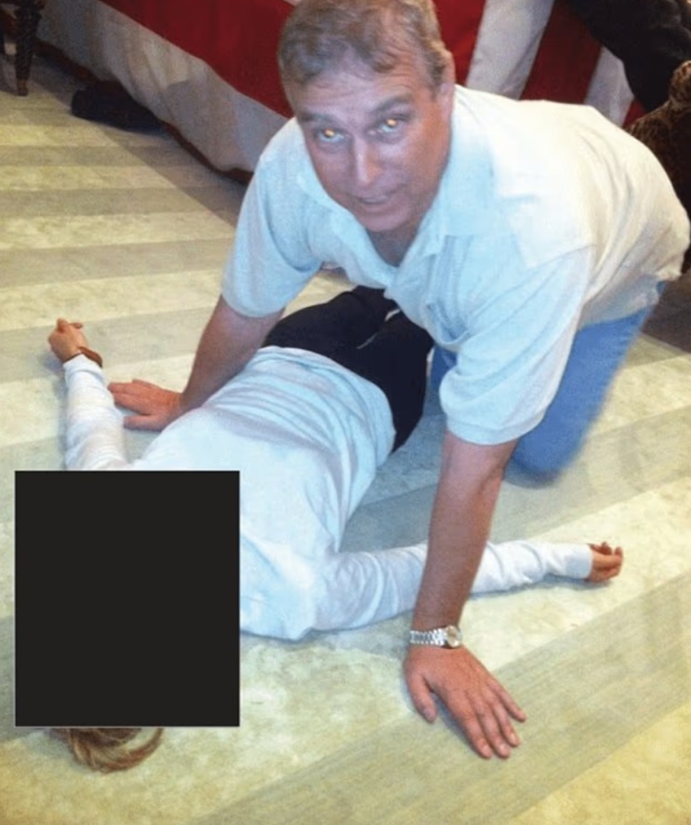 Σοκαριστικές φωτογραφίες που δόθηκαν στη δημοσιότητα στο πλαίσιο των αποκαλούμενων «αρχείων Έπσταϊν» φαίνεται να απεικονίζουν τον πρώην πρίγκιπα Άντριου, σκυμμένο στα τέσσερα πάνω από μια γυναίκα που βρίσκεται ξαπλωμένη στο πάτωμα. Στις τρεις φωτογραφίες, ένας άνδρας που πιστεύεται ότι είναι ο Άντριου διακρίνεται να σκύβει πάνω από τη γυναίκα, η οποία είναι ξαπλωμένη ανάσκελα με τα χέρια ανοιχτά.