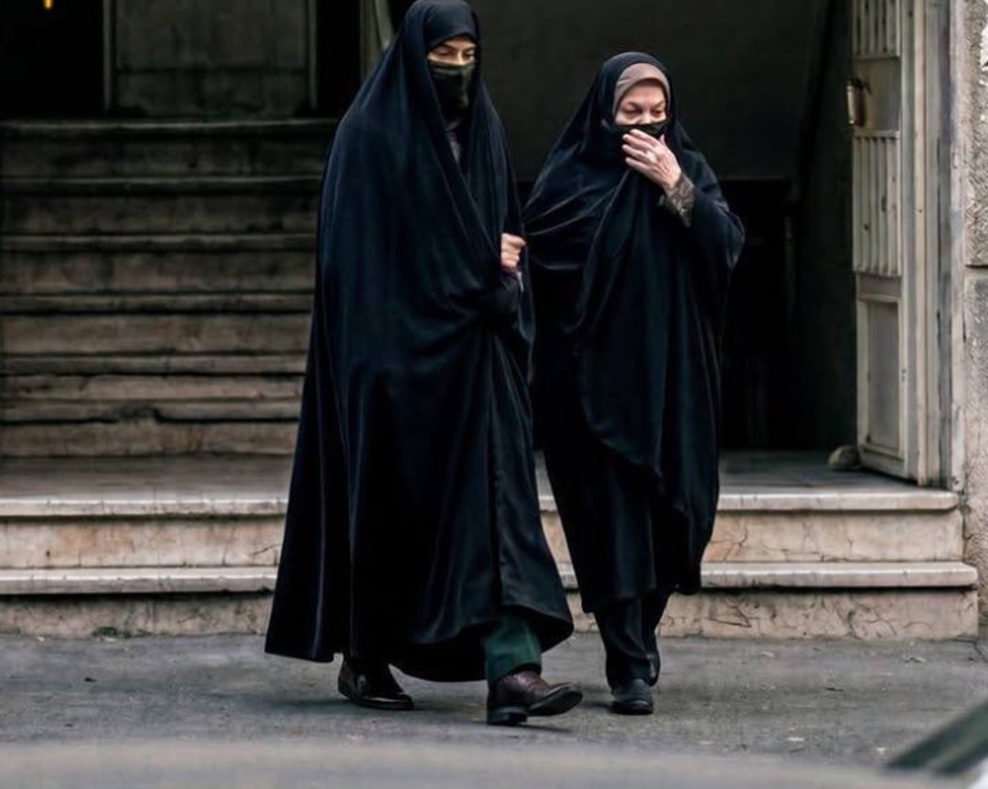 Ο άνδρας στα αριστερά της εικόνας μοιάζει να είναι ο Γιασέρ Λοφούτι, ανώτερος διοικητής της Μπασίτζ στην Τεχεράνη, δηλαδή της παραστρατιωτικής δύναμης καταστολής που λειτουργεί ως ένας από τους βασικούς βραχίονες του ιρανικού παρακράτους ασφαλείας. Η αντίθεση είναι εκκωφαντική: εκεί όπου κάποτε γυναίκες-φρουροί της Επανάστασης πετούσαν τις μαντίλες τους σε μια ιδιωτική, σχεδόν υπόγεια χειρονομία αξιοπρέπειας προς μια Ελληνίδα υπουργό, σήμερα οι άνδρες επικεφαλής της ίδιας μηχανής καταστολής κρύβονται κάτω από μαντίλες και γυναικεία υφάσματα για να σώσουν τη ζωή τους, μετατρέποντας το ίδιο σύμβολο ελέγχου των Ιρανών γυναικών σε αυτοσχέδια στολή διαφυγής.