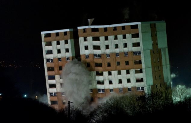 Σε λίγα μόλις δευτερόλεπτα η τεράστια 17ώροφη πολυκατοικία που βρίσκεται στην περιοχή Greenock κοντά στη Γλασκώβη κατεδαφίστηκε με ελεγχόμενη έκρηξη.