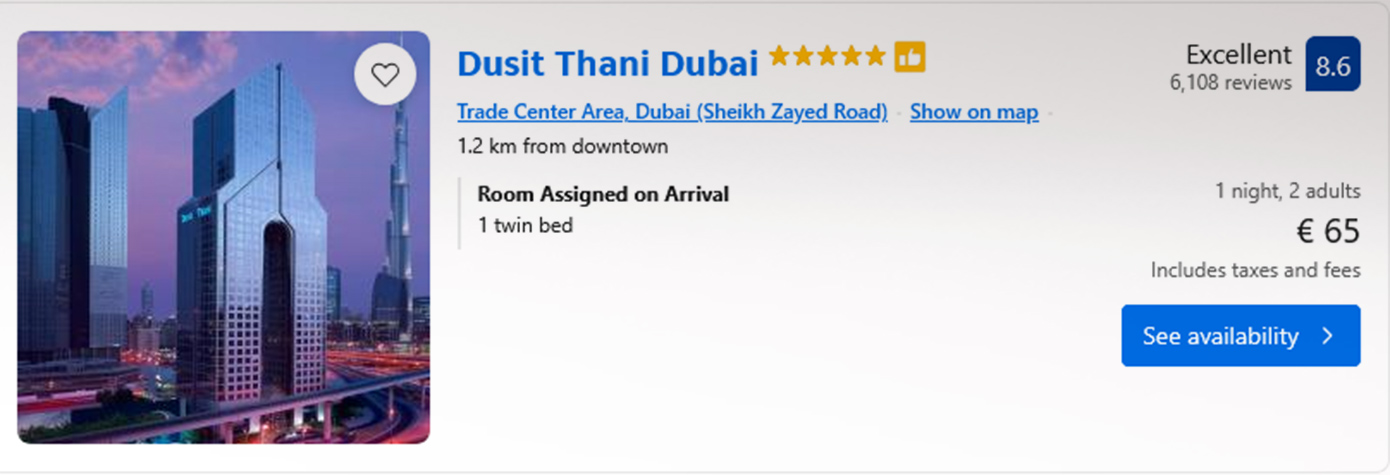 Έτσι, η εταιρεία του παρέχει σχεδόν δωρεάν τα δωμάτιά της. Με λίγα ευρώ είναι πλέον εφικτό να κλείσει κάποιος δωμάτιο σε πεντάστερο ξενοδοχείο στο Ντουμπάι, λαμβάνοντας παράλληλα και πολυτελείς παροχές.